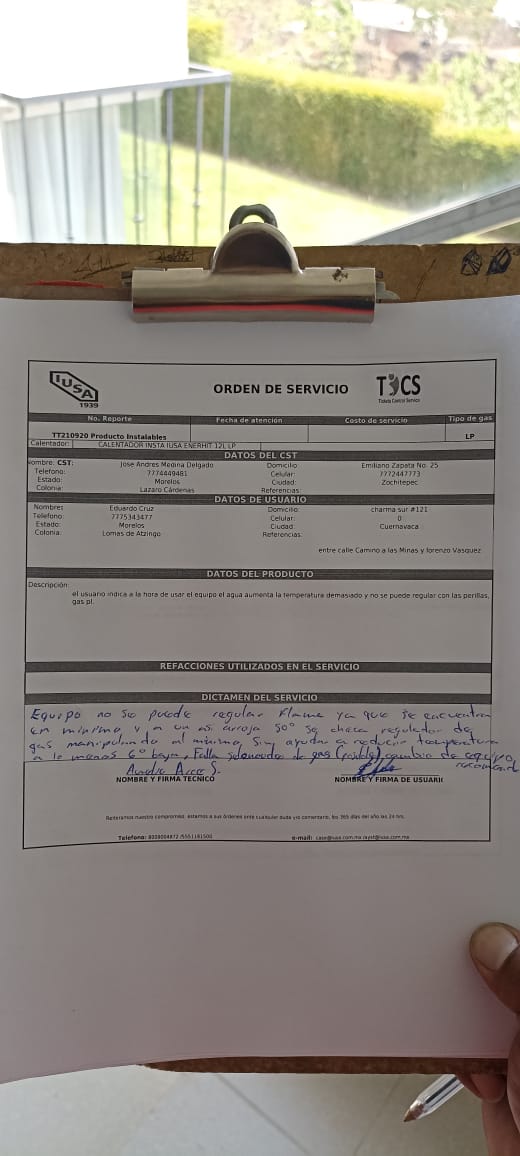 | el usuario indica a la hora de usar el equipo el agua aumenta la temperatura demasiado y no se puede regular con las perillas, gas pl. |