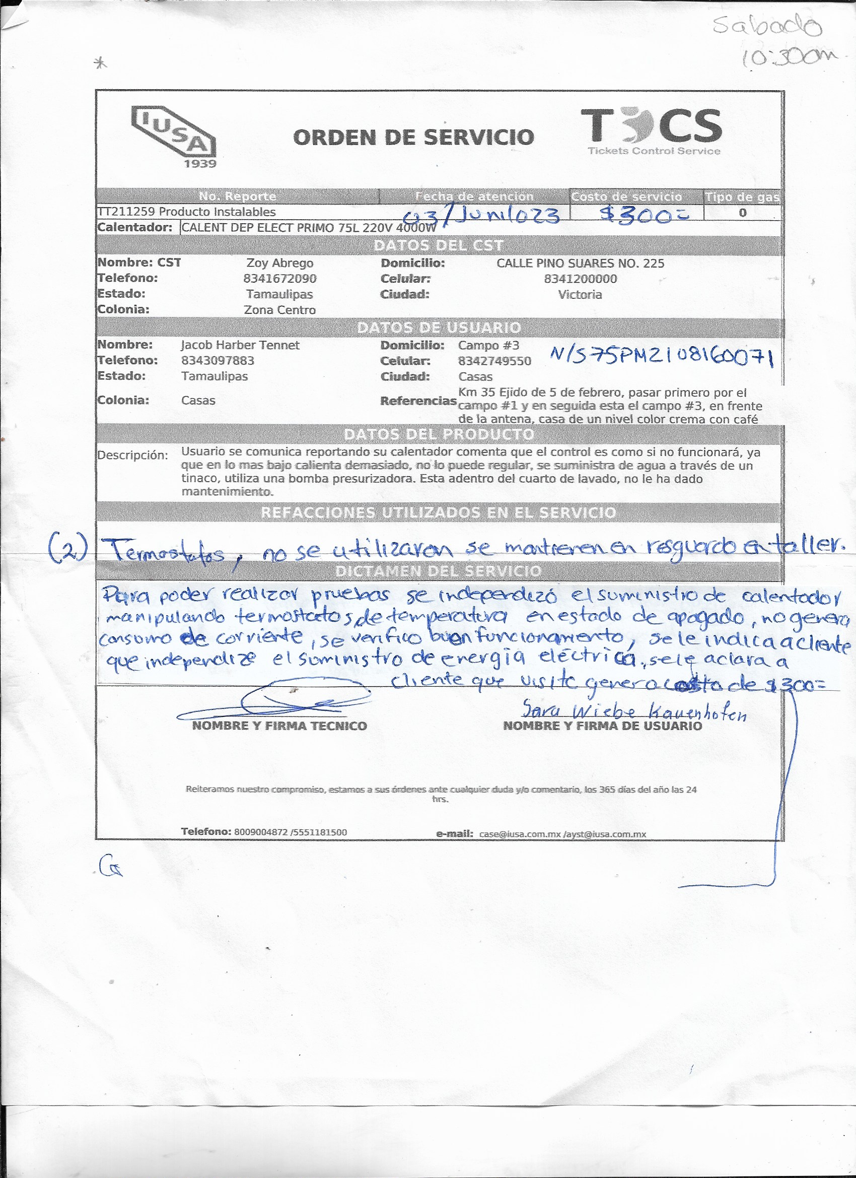 | Técnico | Zoi Abrego | Fecha Asistencia | 2023-06-03 10:13:00 | ||||||||||||||||