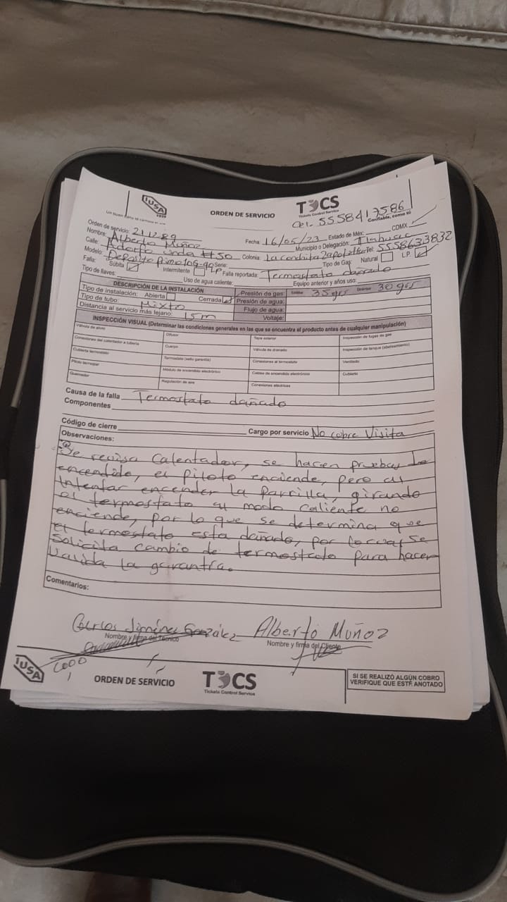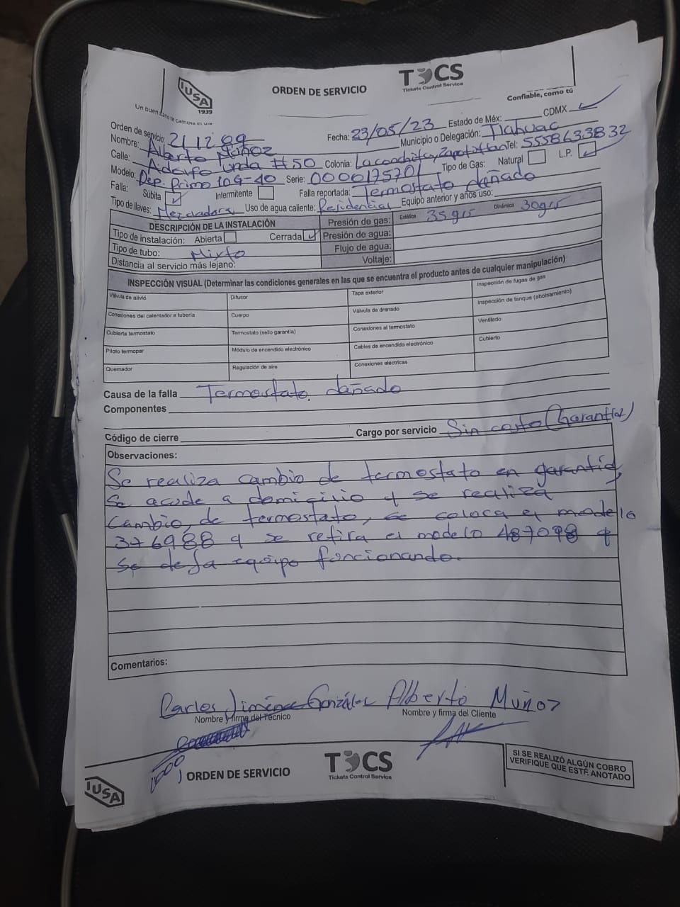 | Orden Interna | 58011145 | Falla Real | Termostato dañado | ||||||||||||||||