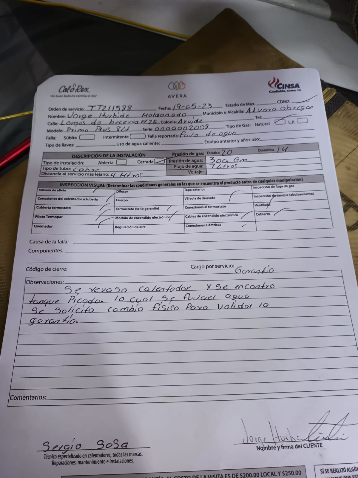 | Orden de Servicio | 211588 | Orden Interna Refacción | 217934 | ||||||||||||||||