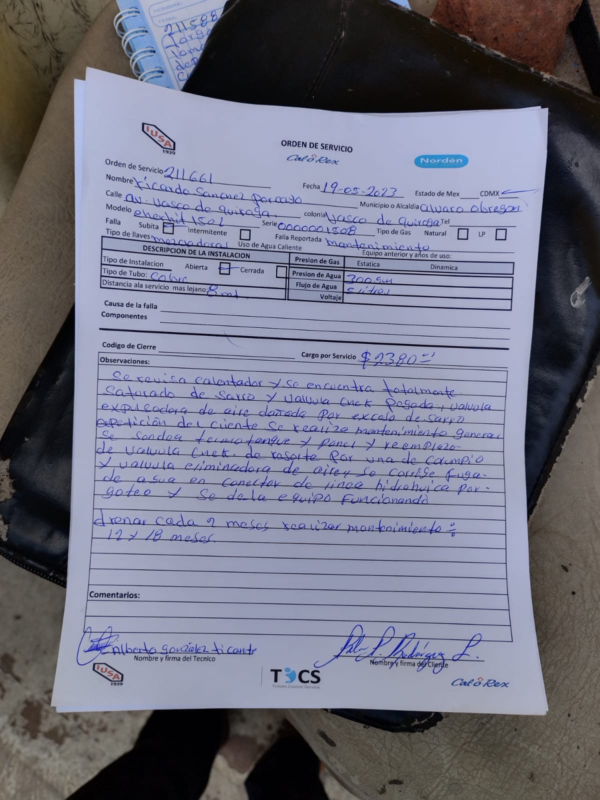 Usuario comenta que requiere un mantenimiento de su calentador, no se le a echo ningún mantenimiento al calentador. |