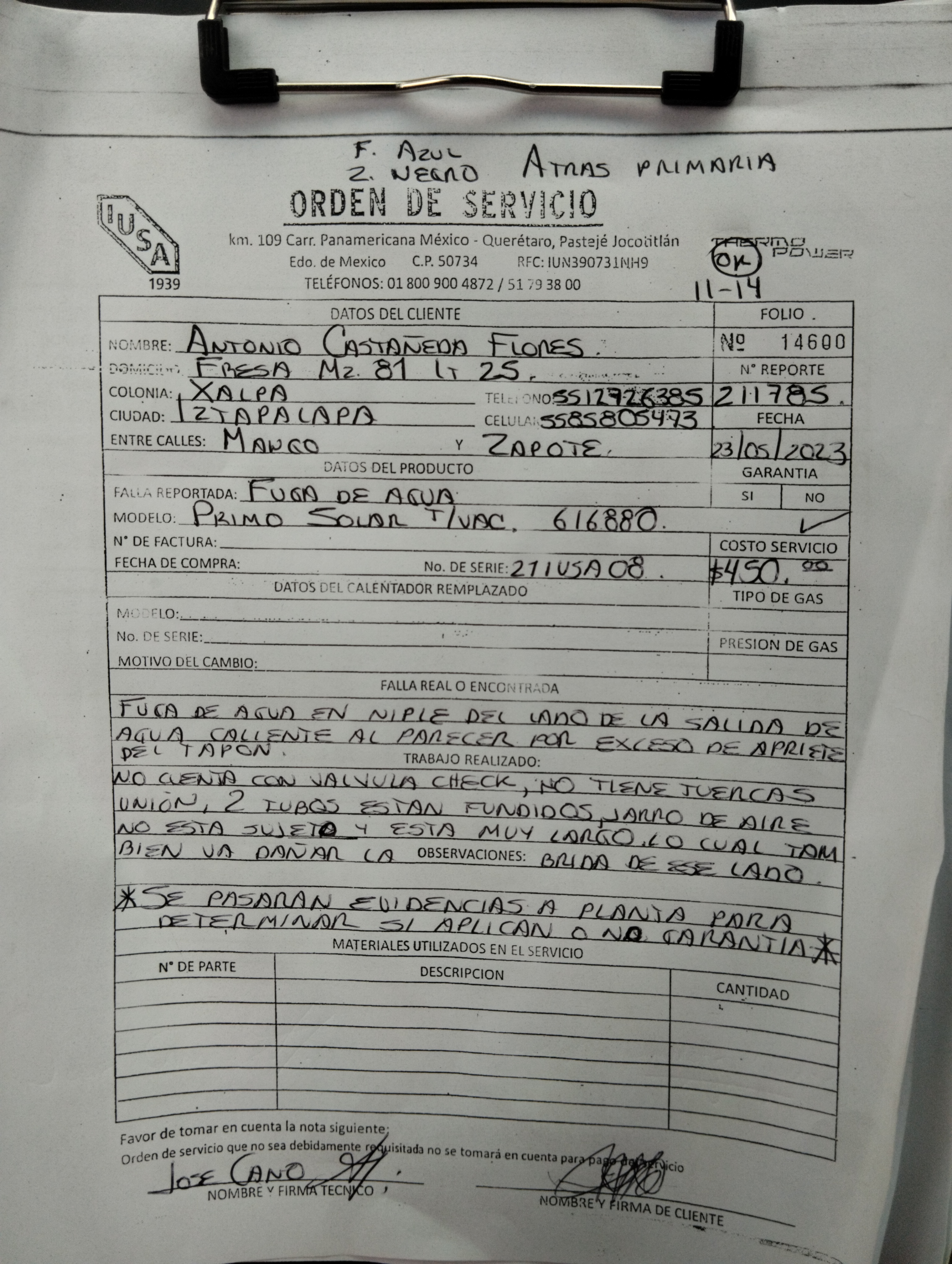 | Técnico | Jose Cano Sanchez | Fecha Asistencia | 2023-05-22 17:43:00 | ||||||||||||||||