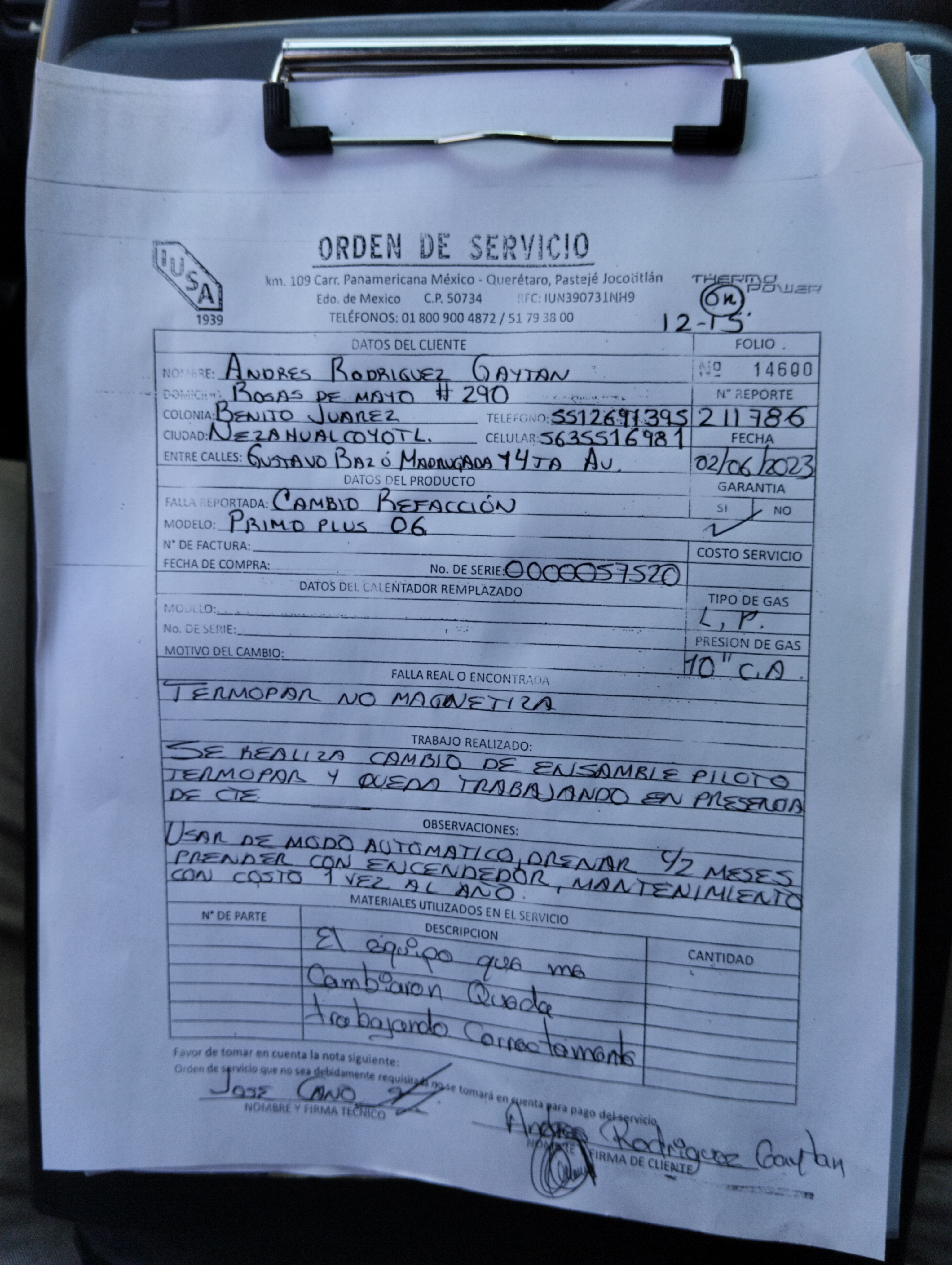 | Orden de Servicio | TT211786 | Orden Interna Refacción | 212094 | ||||||||||||||||