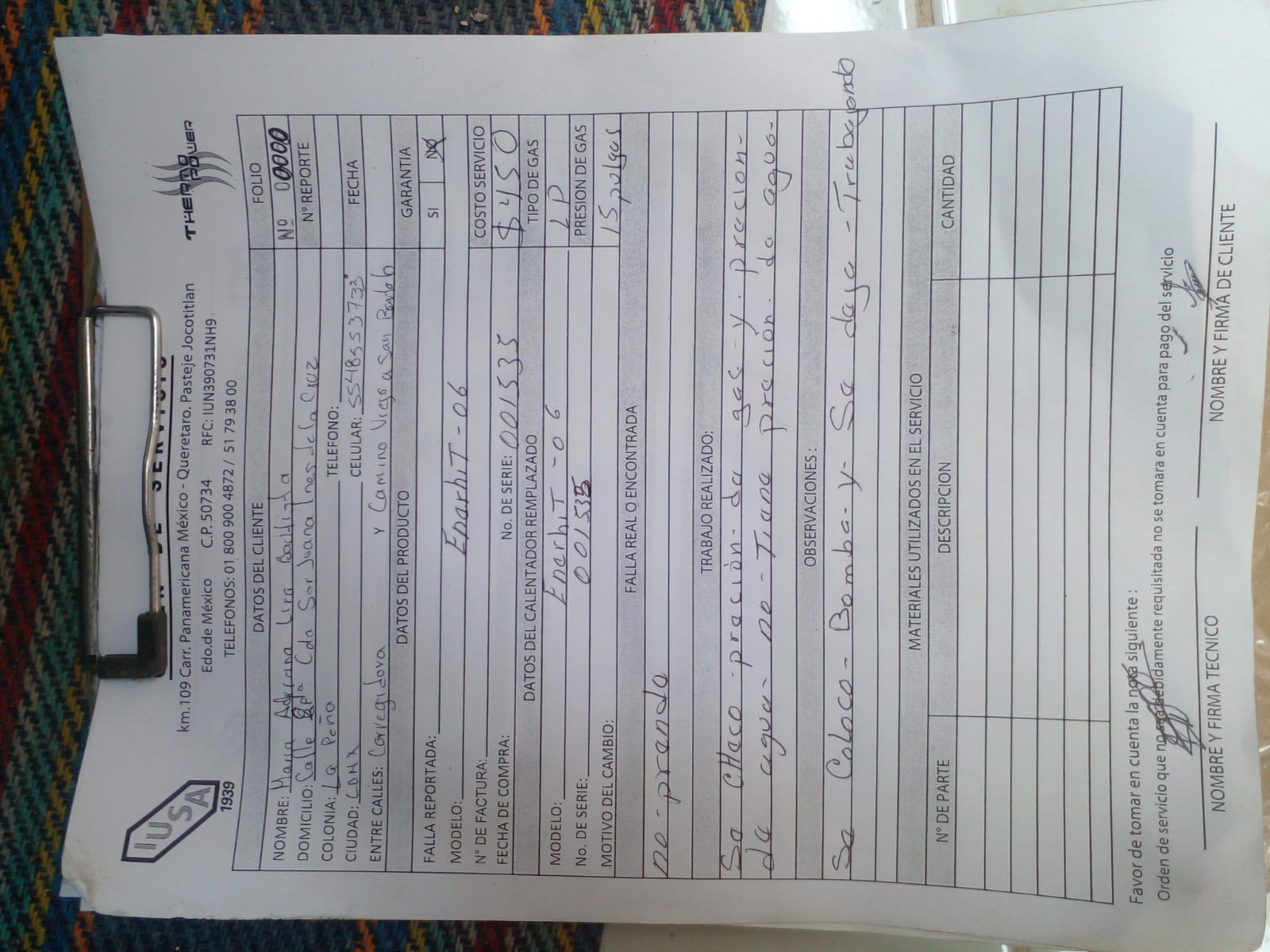 | Refacciones Utilizadas | Pendiente | Tipo de Refacción | Pendiente | ||||||||||||||||