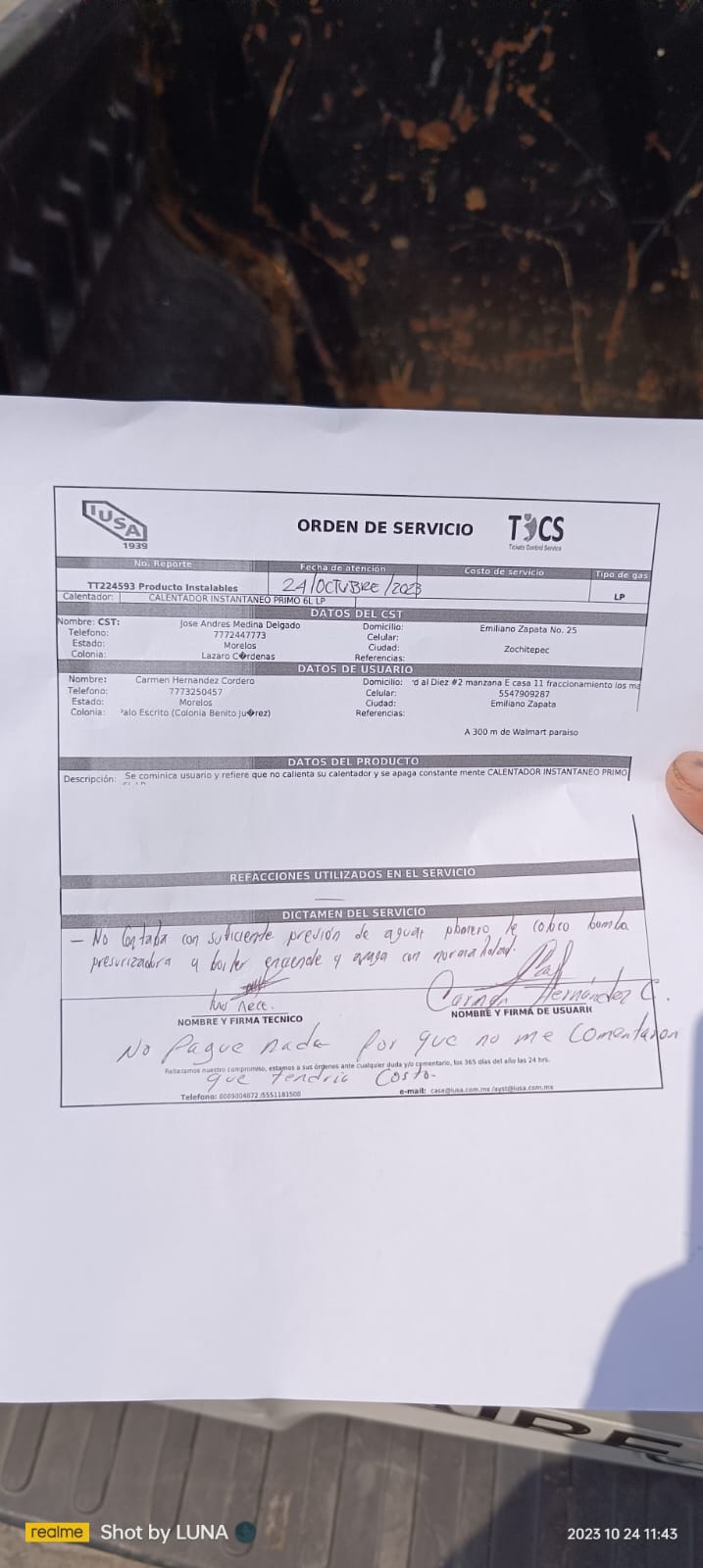 | Técnico | Jose Andres Medina Delgado | Fecha Asistencia | 2023-10-25 10:58:00 | ||||||||||||||||