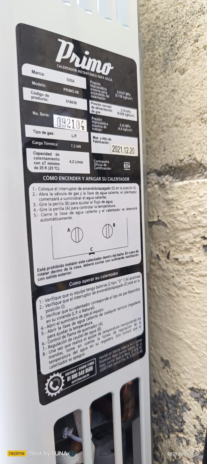 | Material | CALENTADOR INSTANTANEO PRIMO 6L LP | Tipo Producto | |