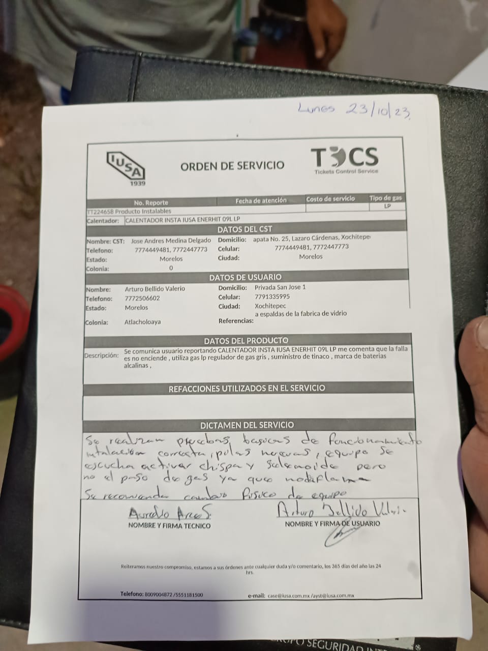 | Técnico | Jose Andres Medina Delgado | Fecha Asistencia | 2023-11-01 18:30:00 | ||||||||||||||||