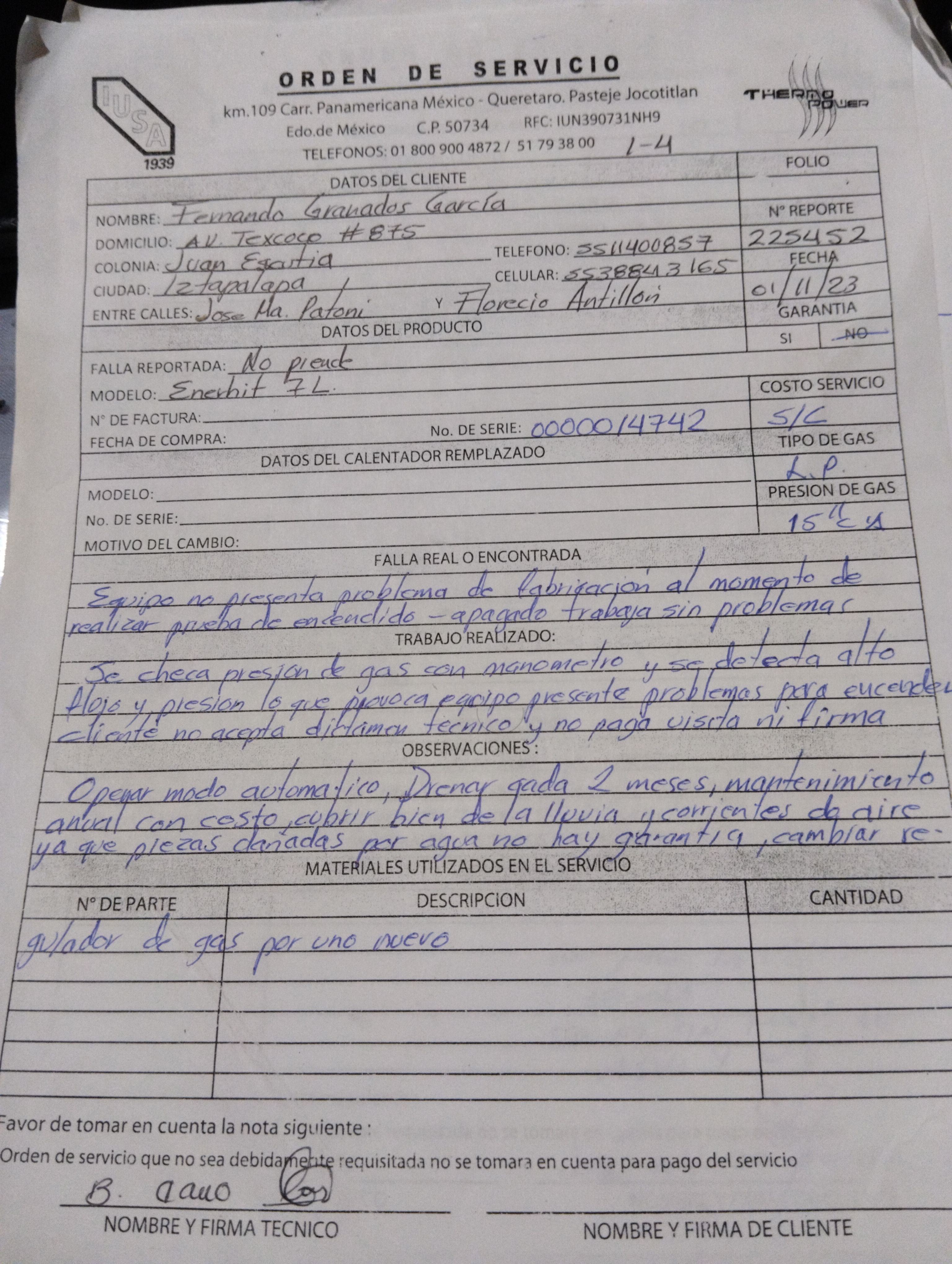 | Orden de Servicio | 225452 | Orden Interna Refacción | |||||||||||||||||