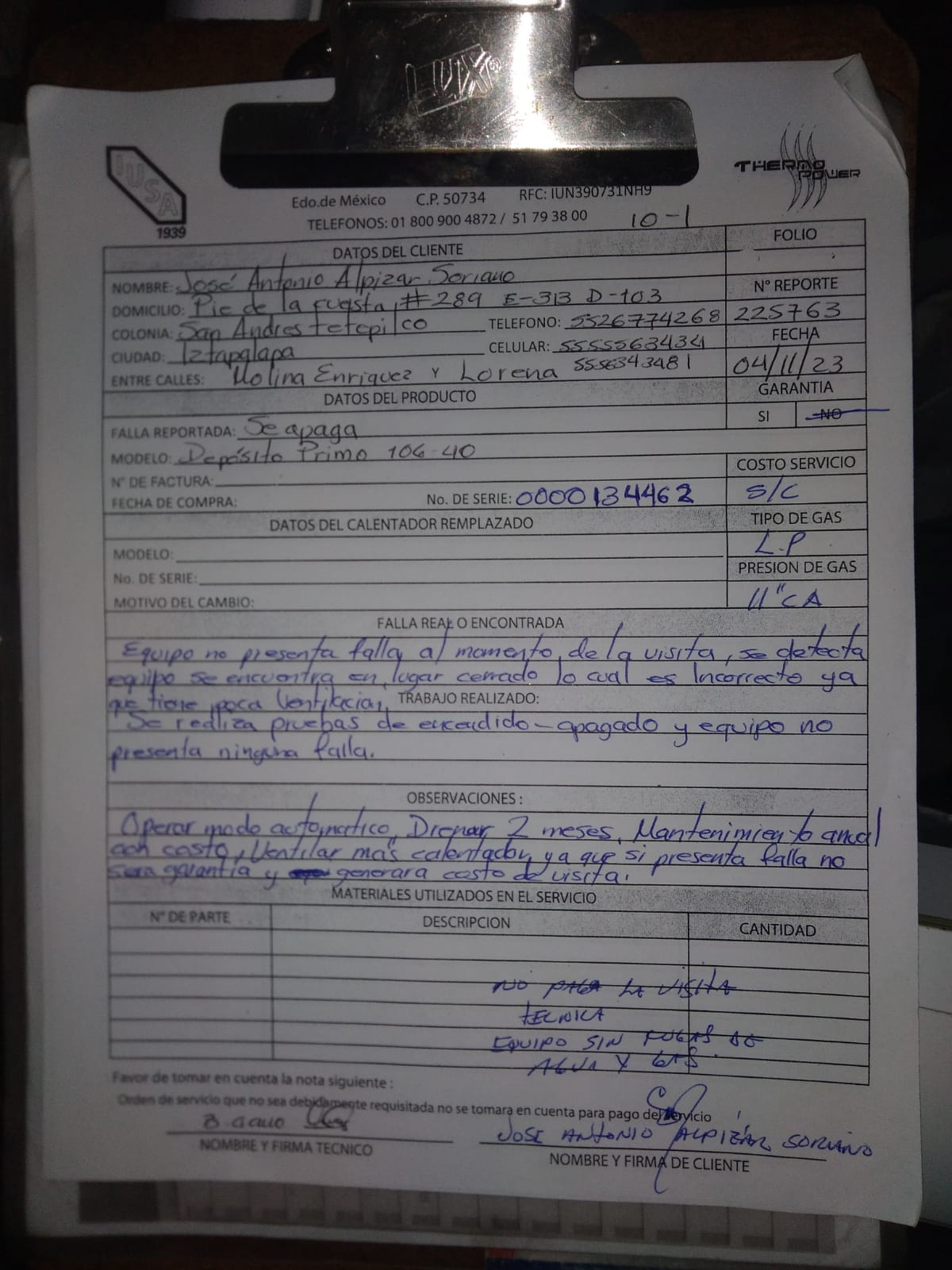 | Técnico | Jose Cano Sanchez | Fecha Asistencia | 2023-11-03 11:00:00 | ||||||||||||||||