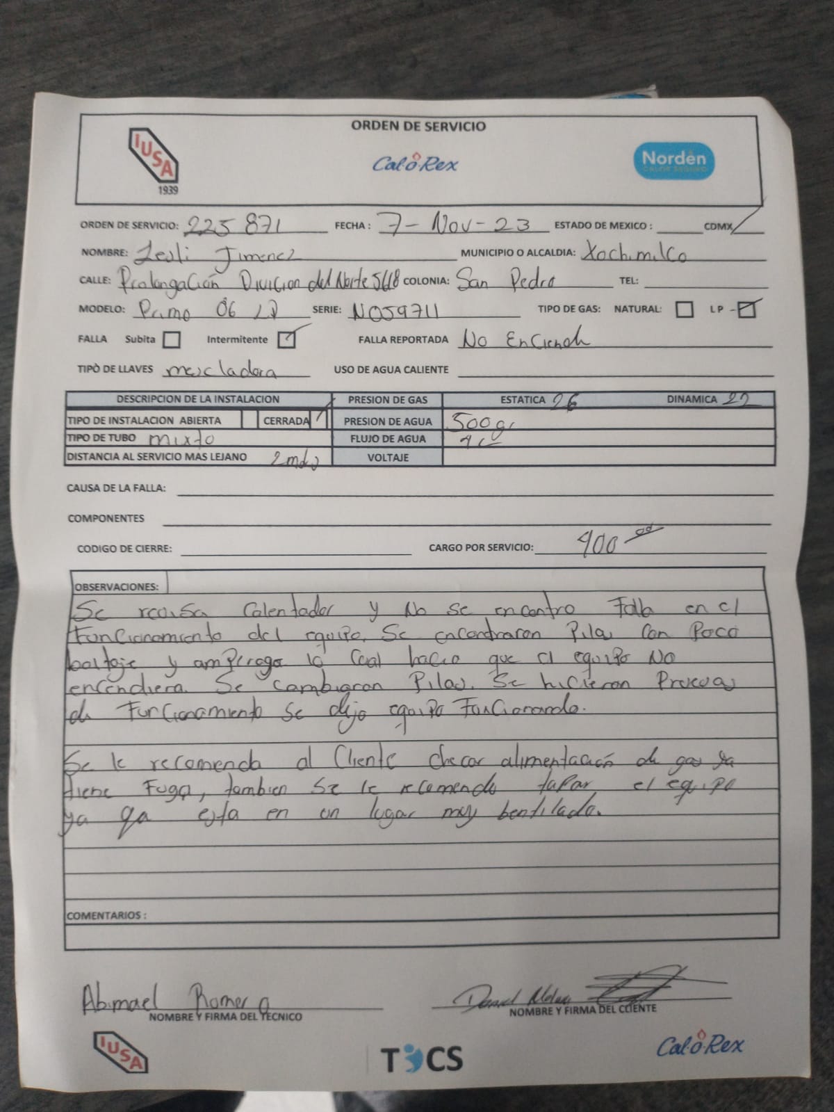 | Refacciones Utilizadas | NO | Tipo de Refacción | N/A | ||||||||||||||||