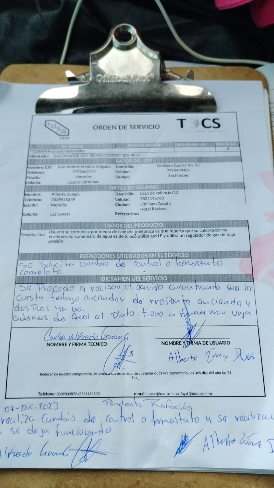 | Técnico | Jose Andres Medina Delgado | Fecha Asistencia | 2023-12-07 13:20:00 | ||||||||||||||||