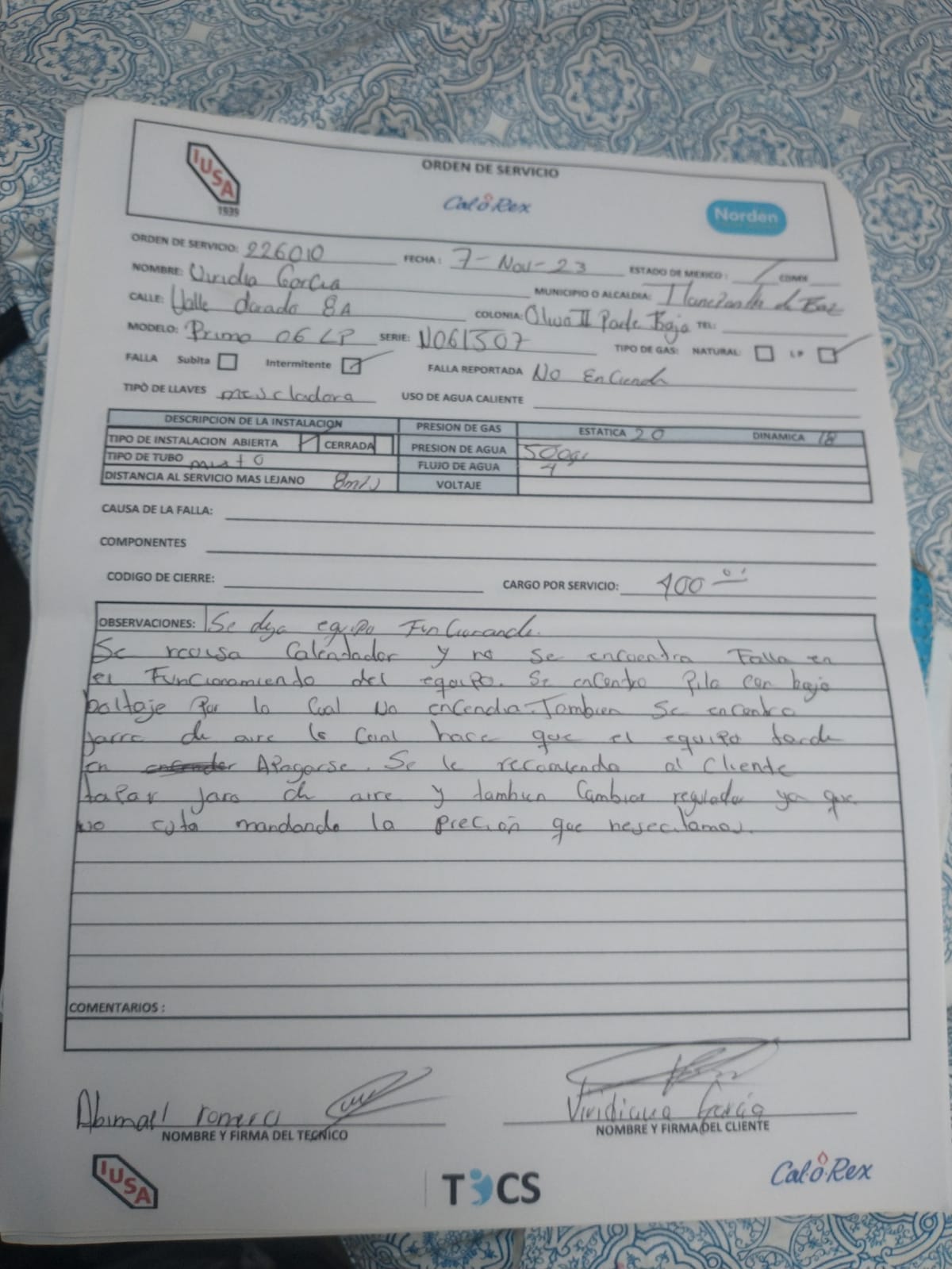 | Técnico | Alberto Gonzalez | Fecha Asistencia | 2023-11-07 14:00:00 | ||||||||||||||||