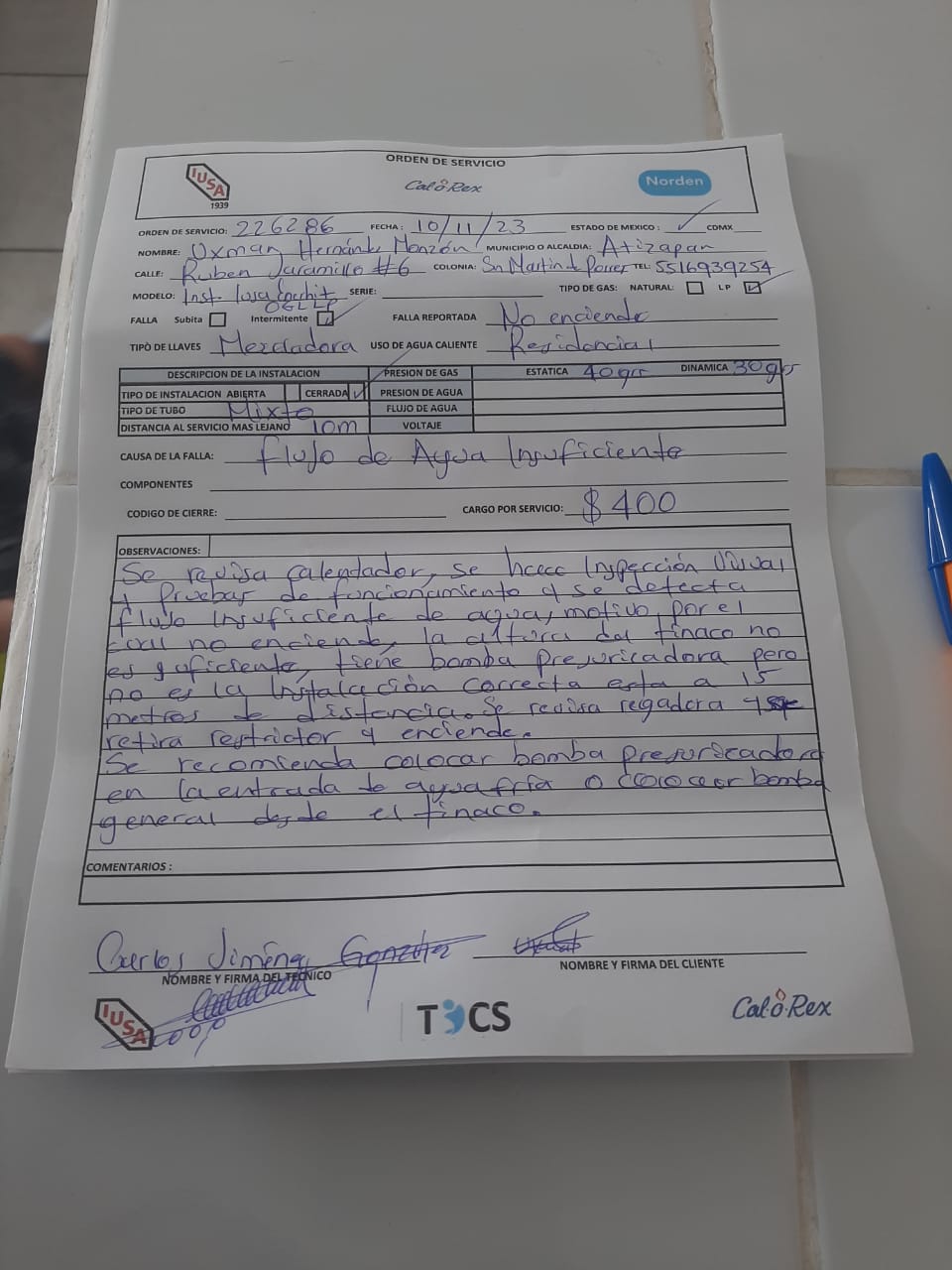 | Técnico | Alberto Gonzalez | Fecha Asistencia | 2023-11-10 14:00:00 | ||||||||||||||||