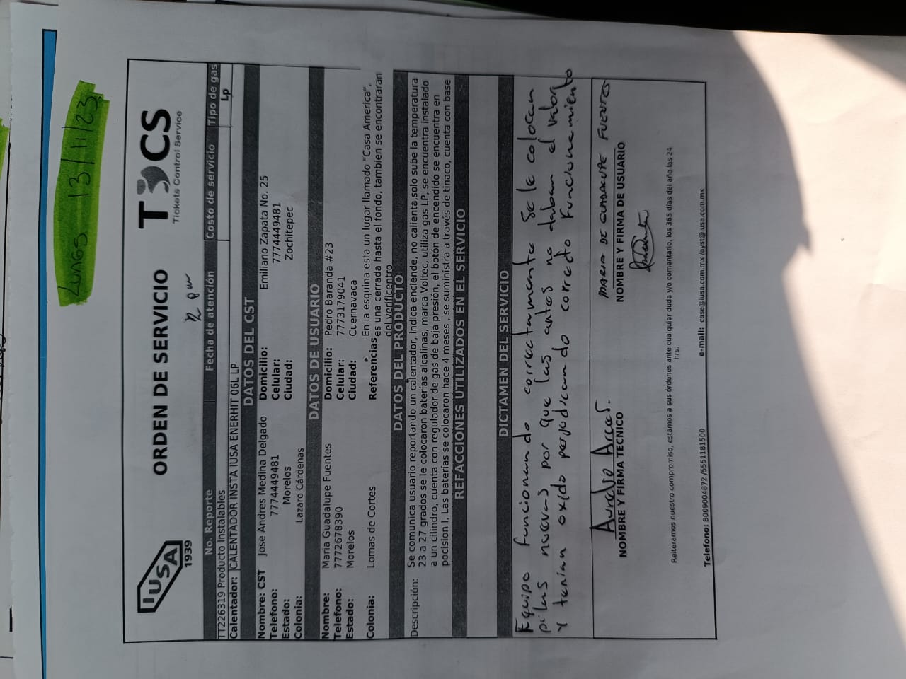 | Técnico | Jose Andres Medina Delgado | Fecha Asistencia | 2023-11-13 15:40:00 | ||||||||||||||||