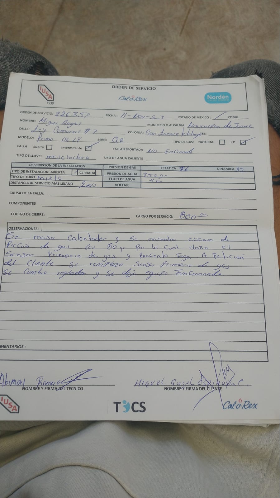 | Refacciones Utilizadas | NO | Tipo de Refacción | N/A | ||||||||||||||||