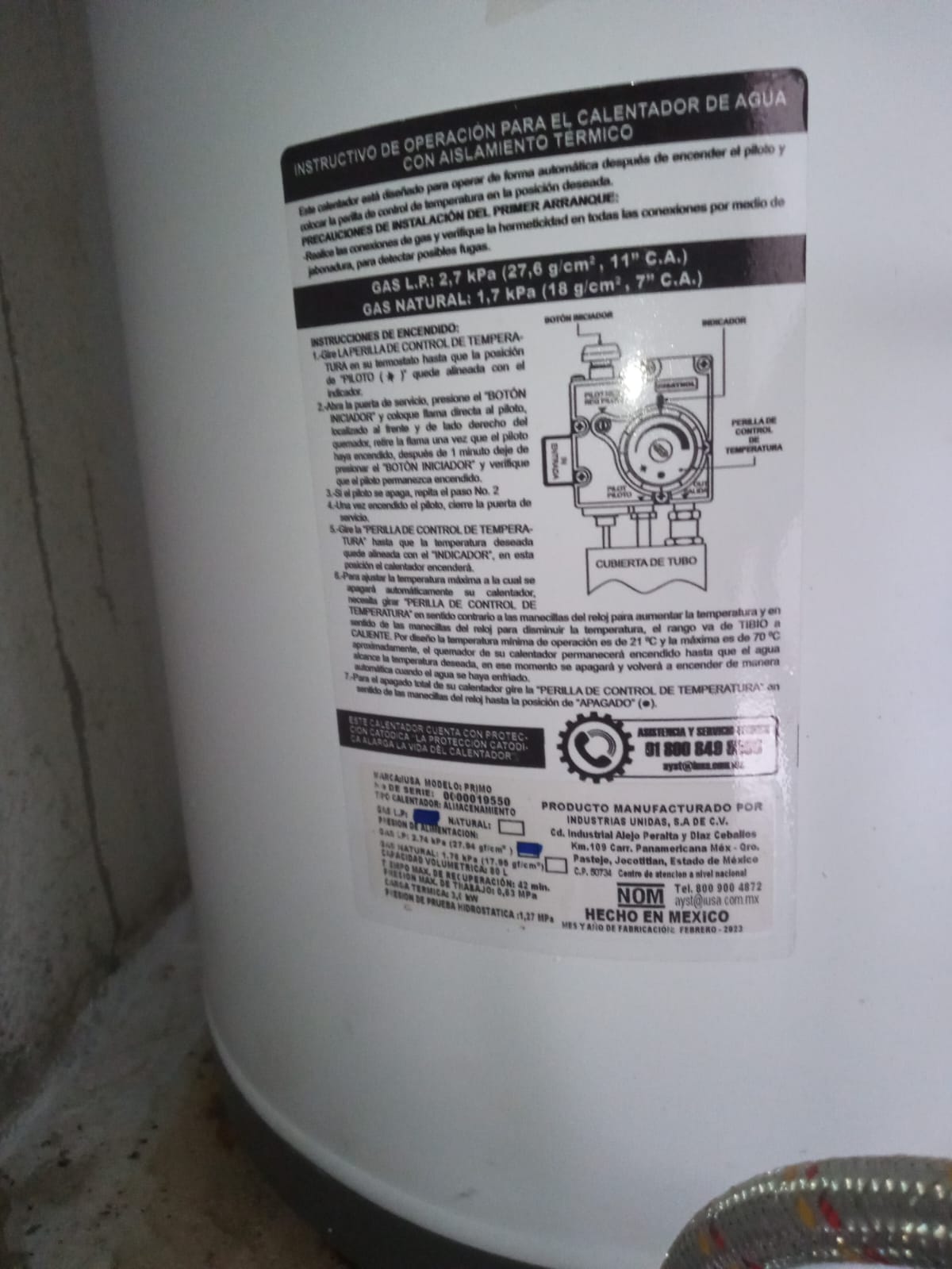 | Material | CALENTADOR DEPOSITO PRIMO 80L. LP | Tipo Producto | |