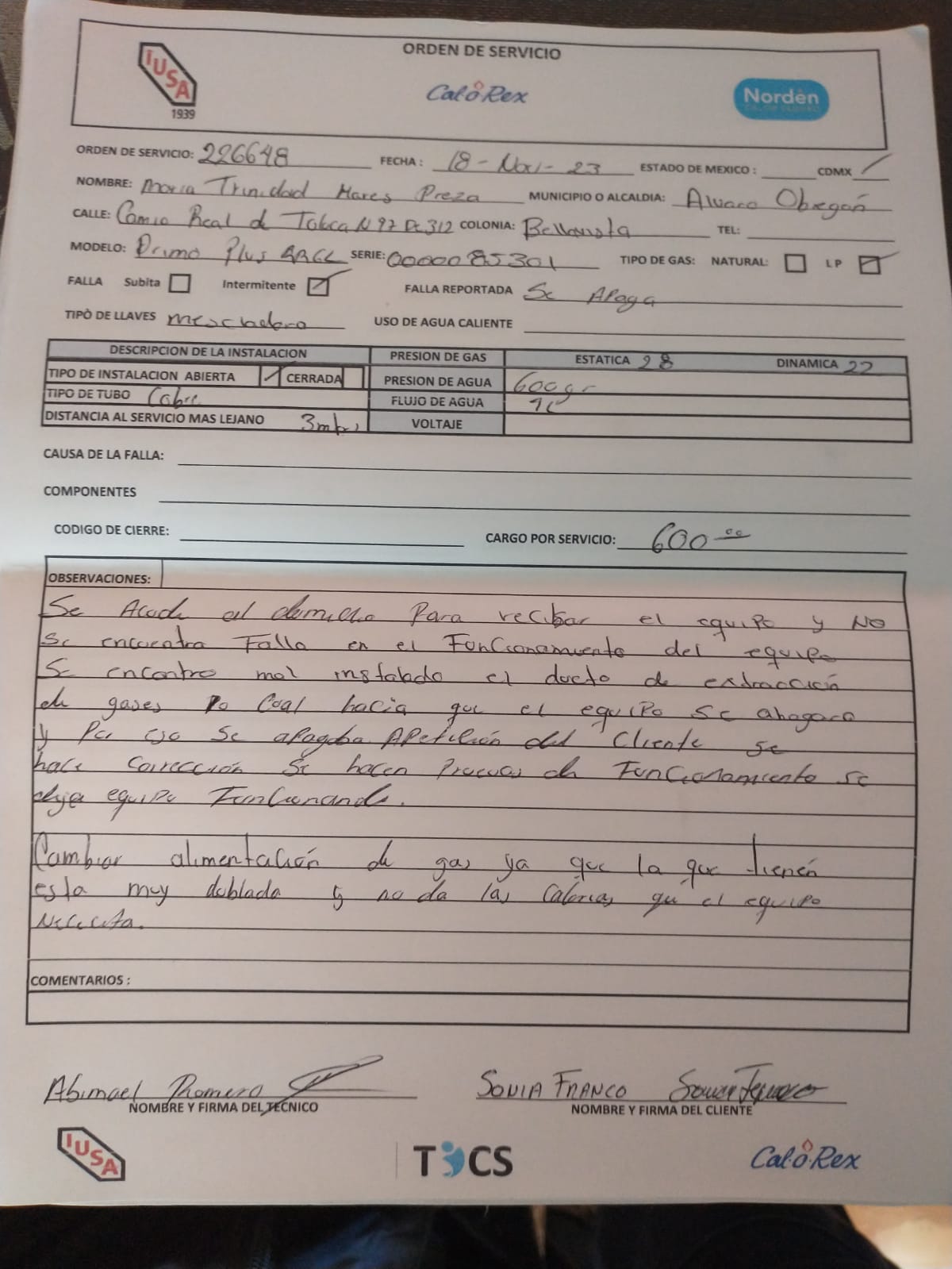 | Técnico | Alberto Gonzalez | Fecha Asistencia | 2023-11-18 09:30:00 | ||||||||||||||||