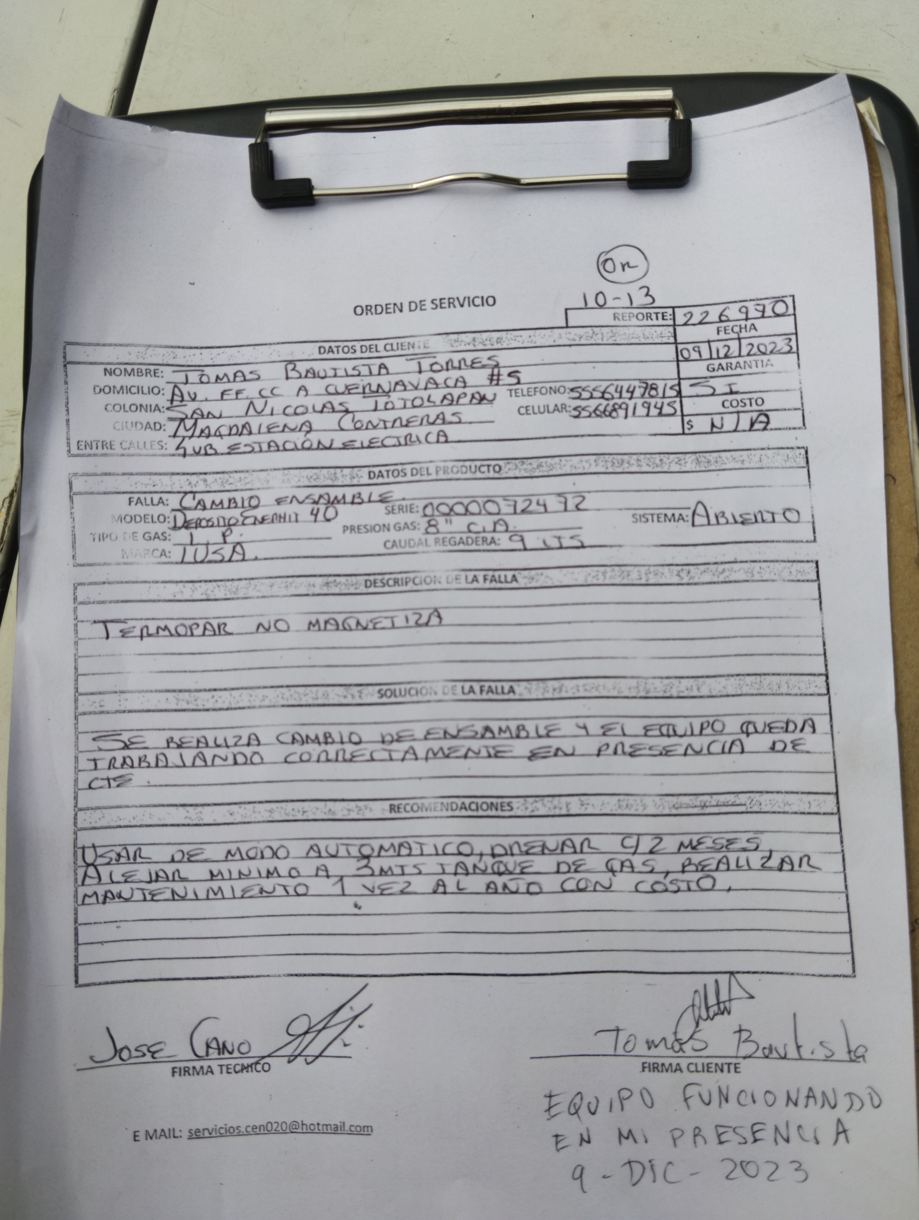 | Técnico | Jose Cano Sanchez | Fecha Asistencia | 2023-12-08 13:30:00 | ||||||||||||||||