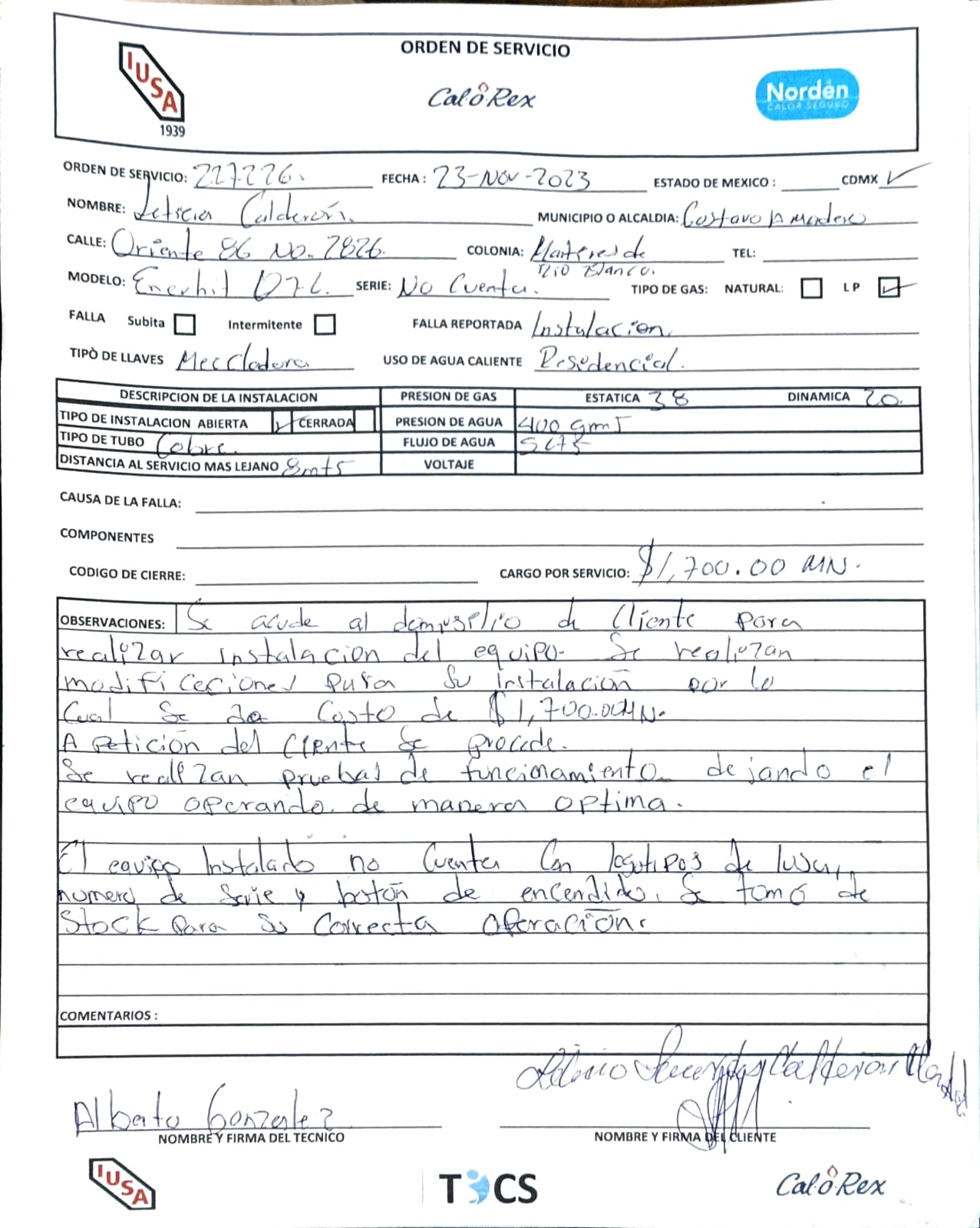 | Técnico | Alberto Gonzalez | Fecha Asistencia | 2023-09-23 18:00:00 | ||||||||||||||||