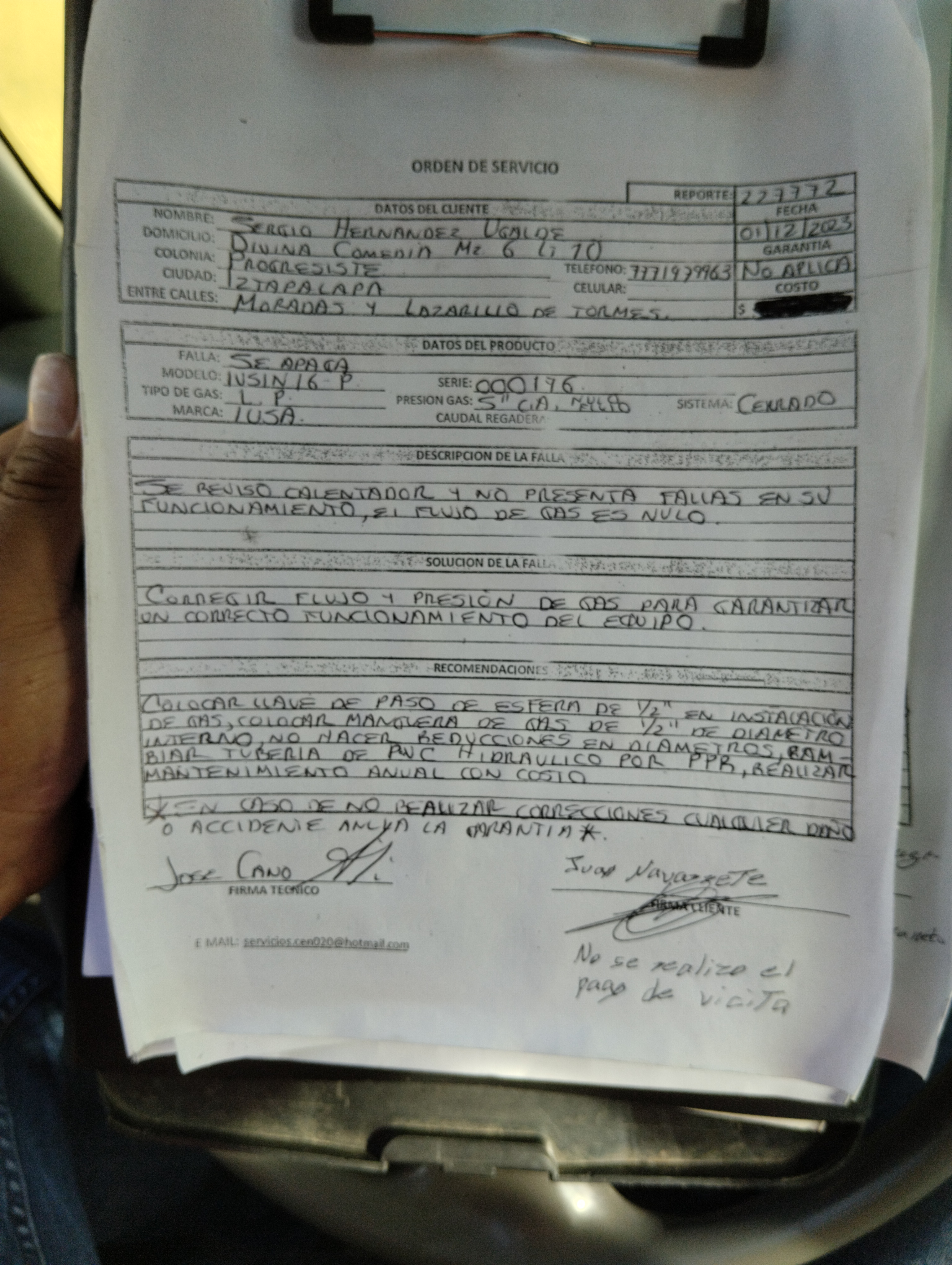 | Técnico | Jose Cano Sanchez | Fecha Asistencia | 2023-12-01 18:00:00 | ||||||||||||||||