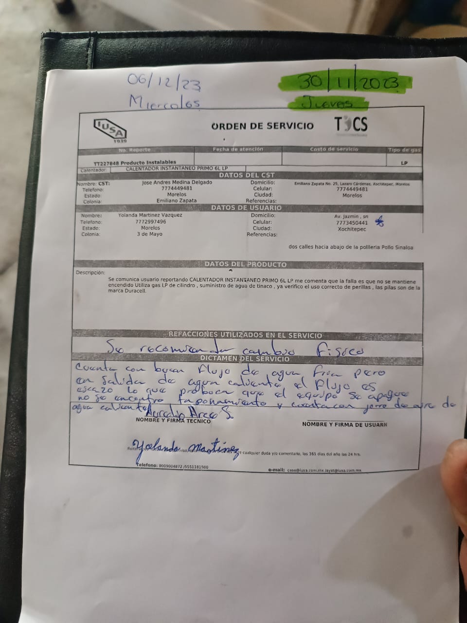 | Técnico | Jose Andres Medina Delgado | Fecha Asistencia | 2023-12-06 12:46:00 | ||||||||||||||||