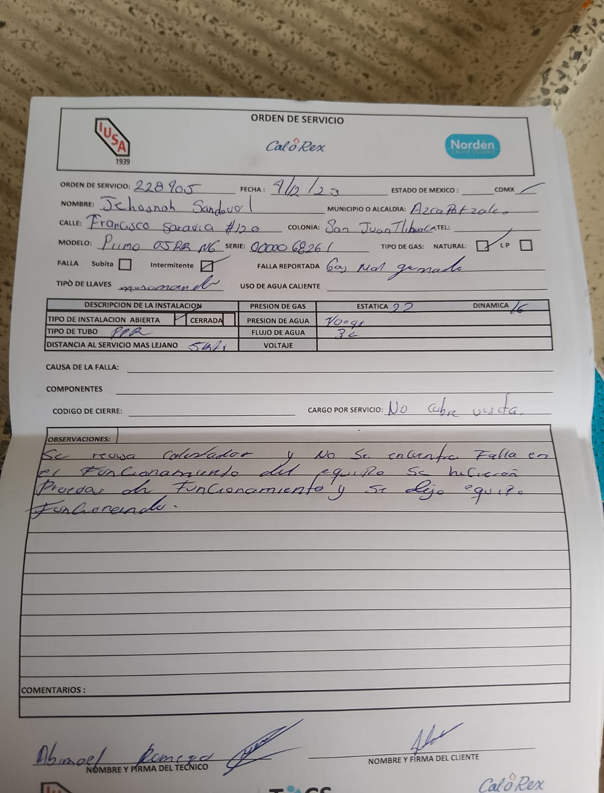 | Refacciones Utilizadas | NO | Tipo de Refacción | N/A | ||||||||||||||||