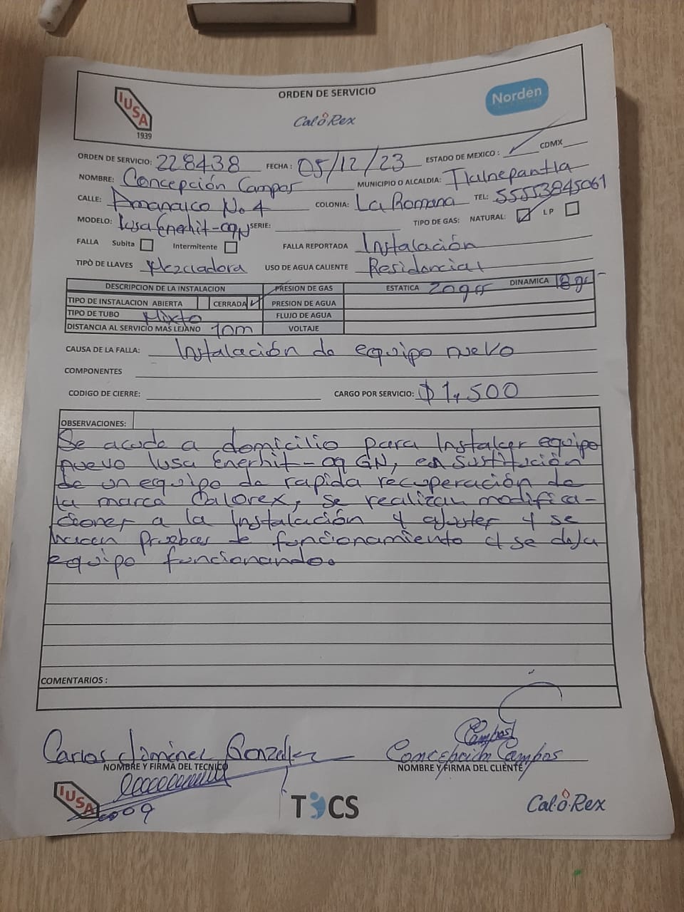| Usuaria solicita servicio de instalación de su calentador con costo |