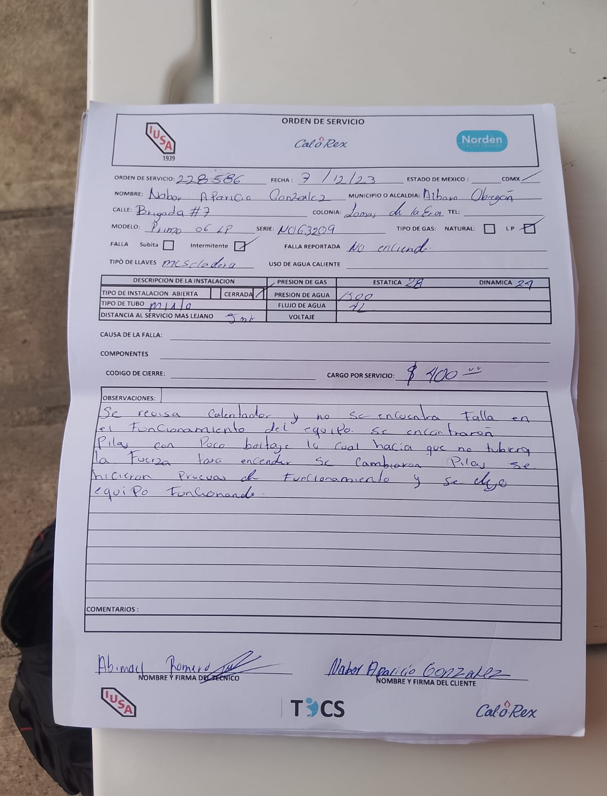 | Refacciones Utilizadas | NO | Tipo de Refacción | N/A | ||||||||||||||||