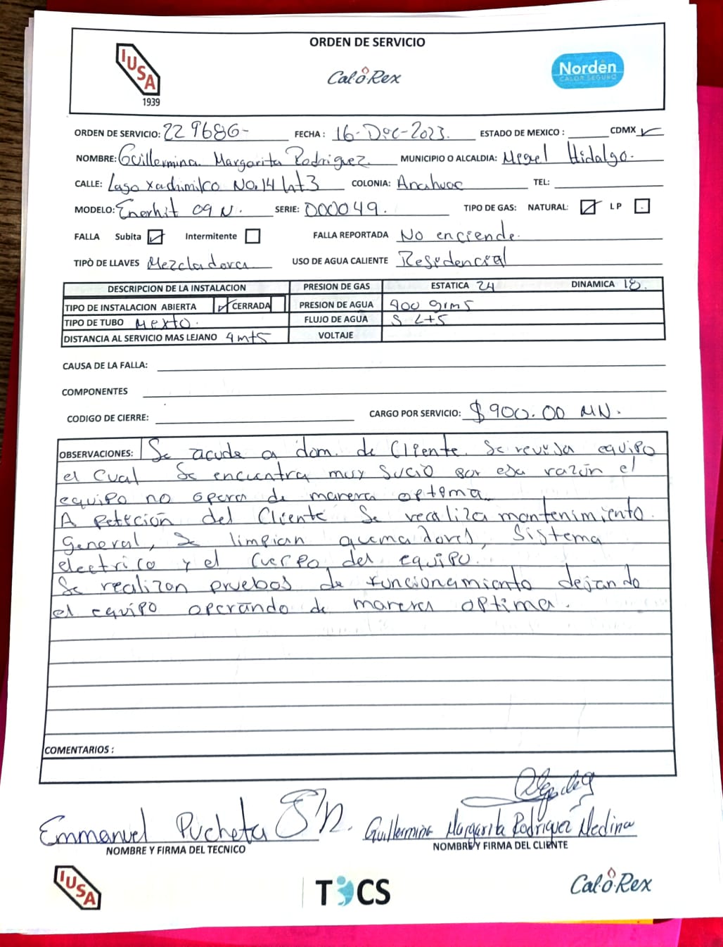 | Se comunca usuario referiendo que quiere un servicio con costo CALENTADOR INSTA IUSA ENERHIT 09L NAT ya que le sucede no le sale agua caliente |