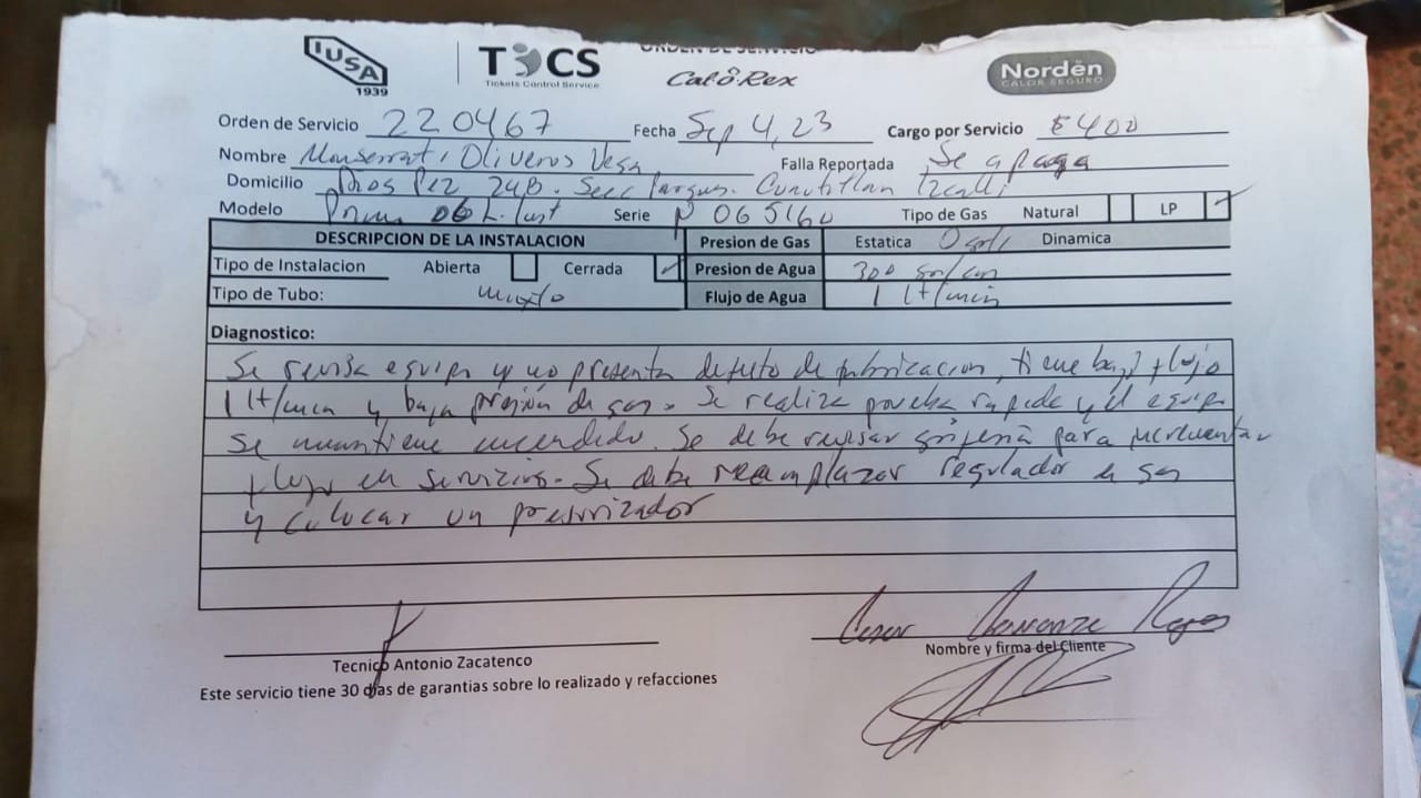| Refacciones Utilizadas | NO | Tipo de Refacción | N/A | ||||||||||||||||