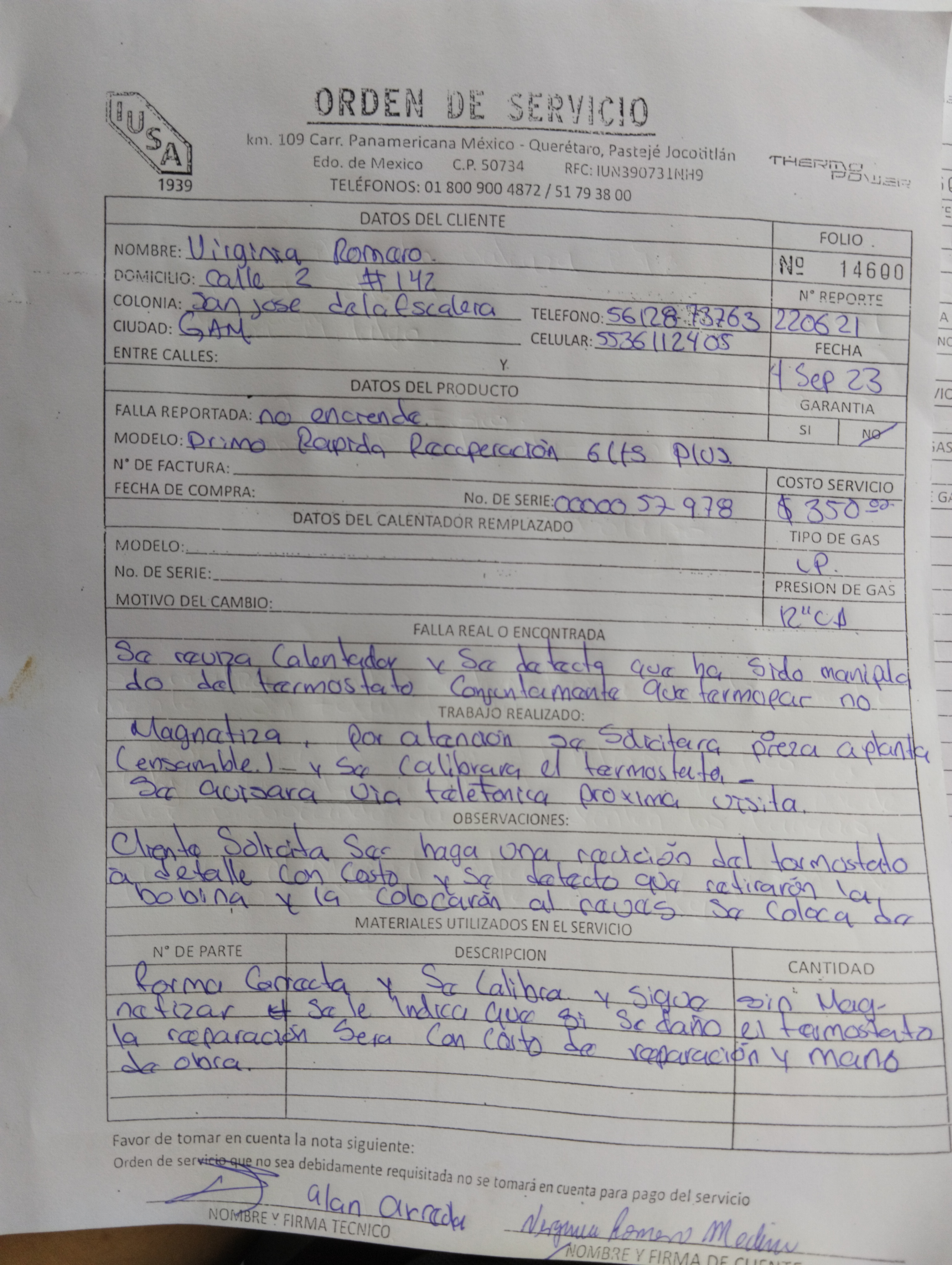 | Técnico | Jose Cano Sanchez | Fecha Asistencia | 2023-09-04 12:30:00 | ||||||||||||||||