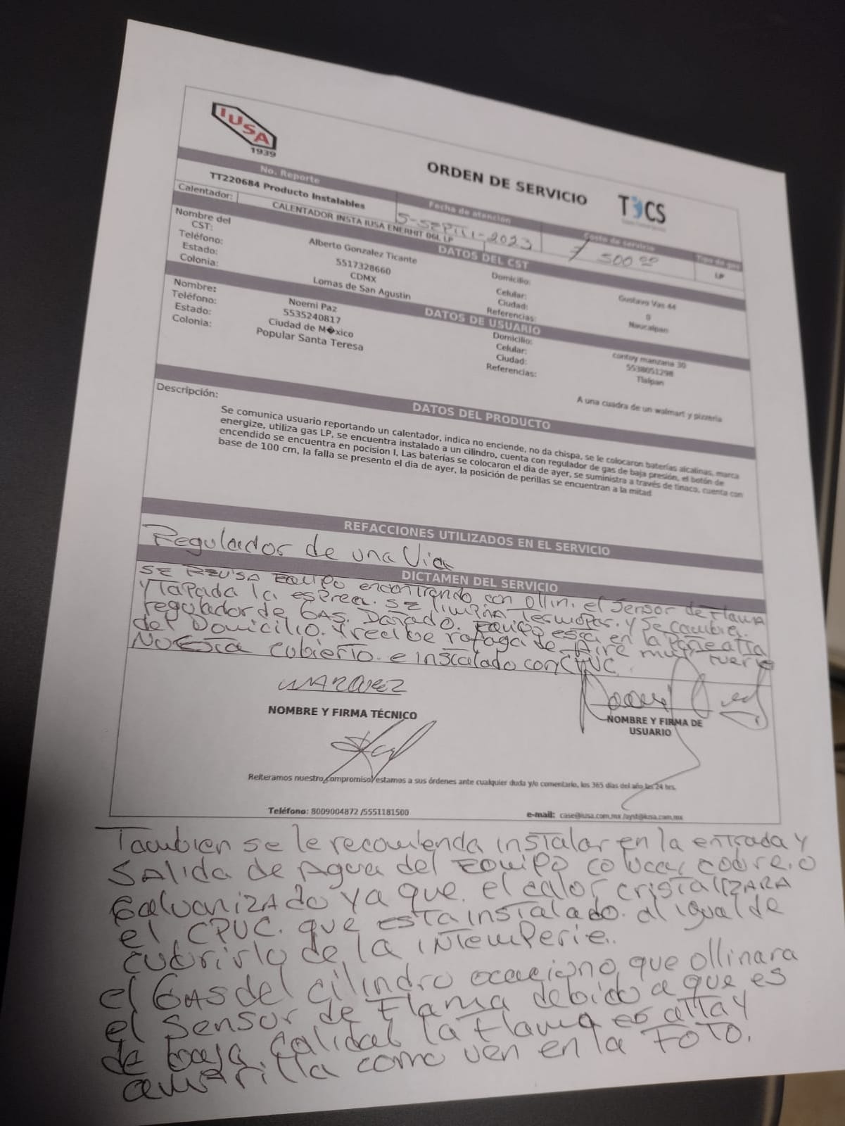 | Técnico | Alberto Gonzalez | Fecha Asistencia | 2023-09-05 15:00:00 | ||||||||||||||||