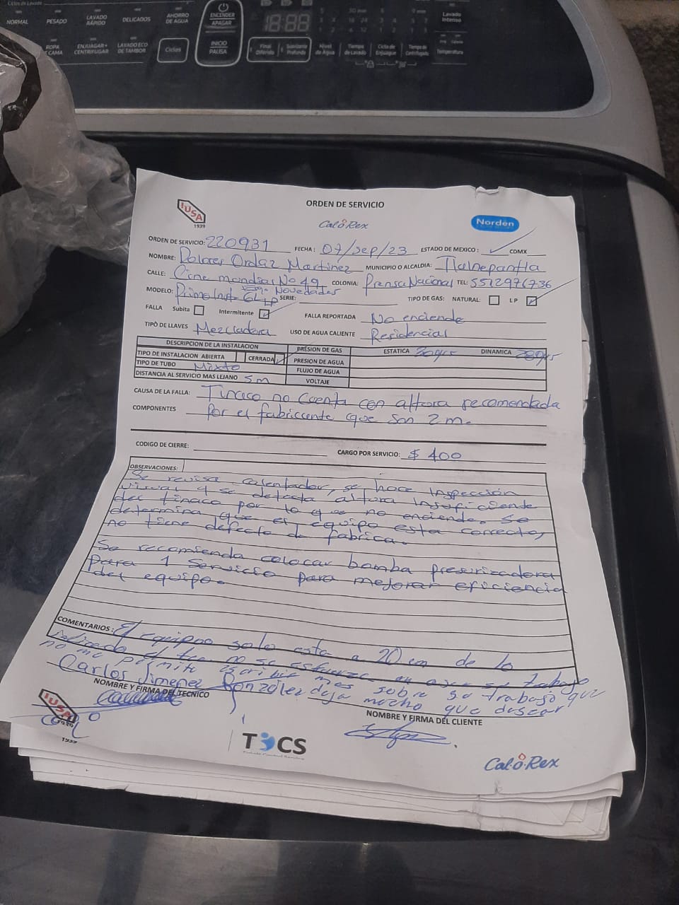 | Refacciones Utilizadas | NO | Tipo de Refacción | N/A | ||||||||||||||||