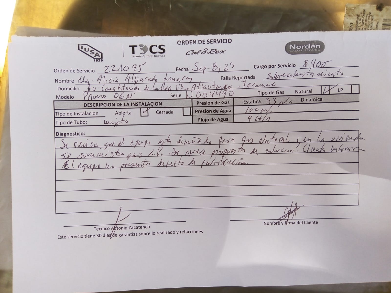 | Acciones | USO DE GAS DIFERENTE PARA EL QUE ES FABRICADO EL CALENTADOR | Solución | NO PROCEDE CAMBIO FISICO | ||||||||||||||||