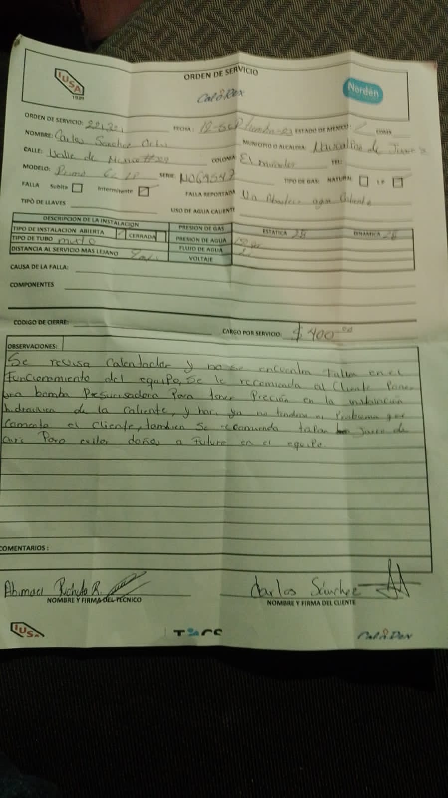 | Usuario reporta que su equipo enciende y calienta pero no llena la tubería para la regadera, la presion de agua que sale es muy poca.
