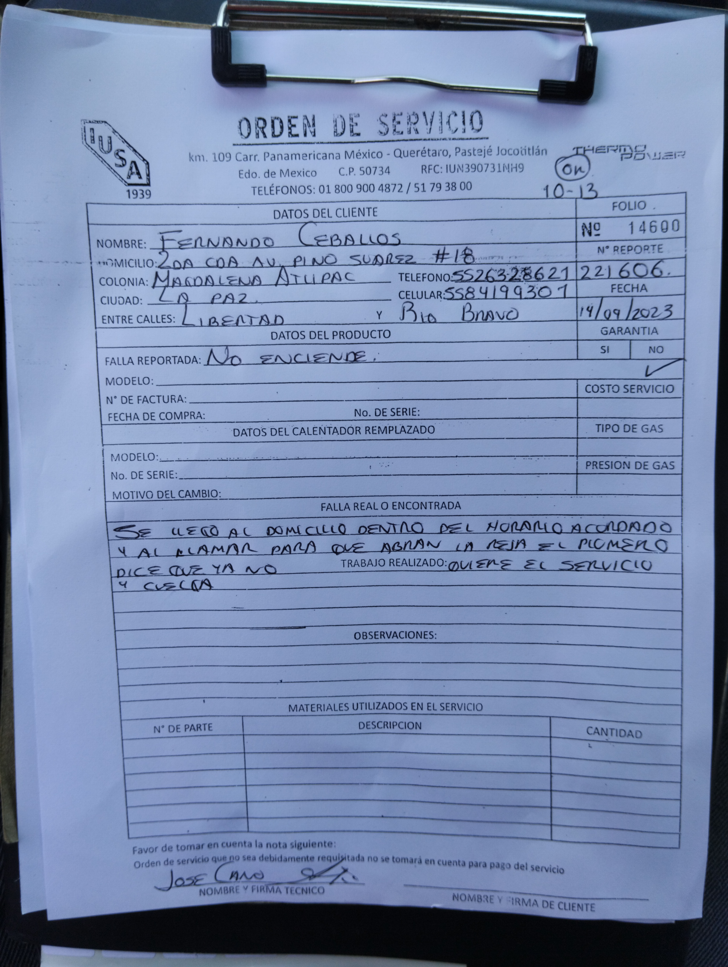 | Técnico | Jose Cano Sanchez | Fecha Asistencia | 2023-09-14 18:10:00 | ||||||||||||||||