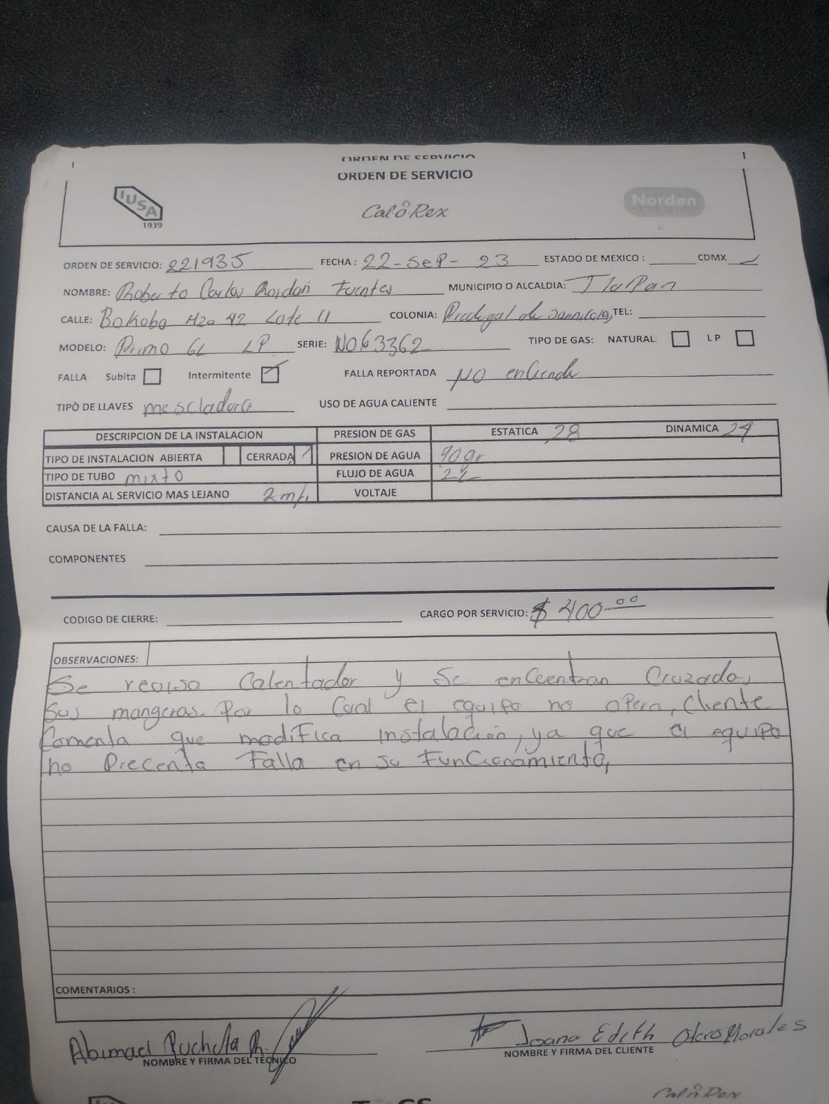 | Refacciones Utilizadas | NO | Tipo de Refacción | N/A | ||||||||||||||||