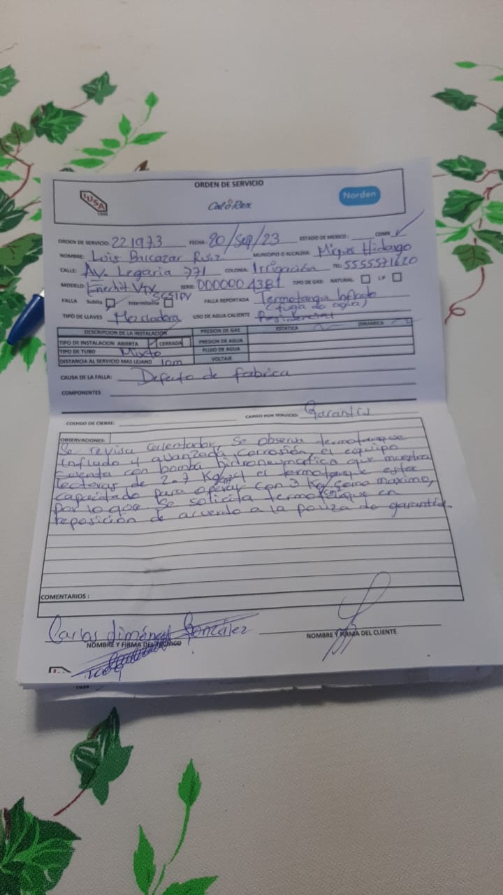 | Orden Interna | 58012112/58012782 | Falla Real | Fuga de agua en termotanque | ||||||||||||||||
