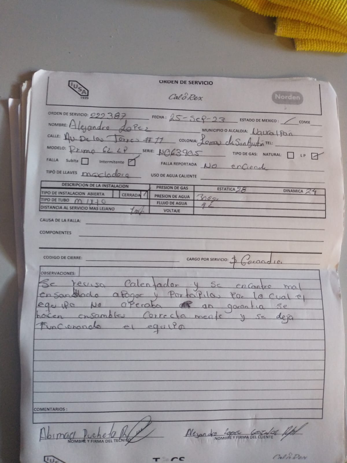 | Refacciones Utilizadas | NO | Tipo de Refacción | N/A | ||||||||||||||||