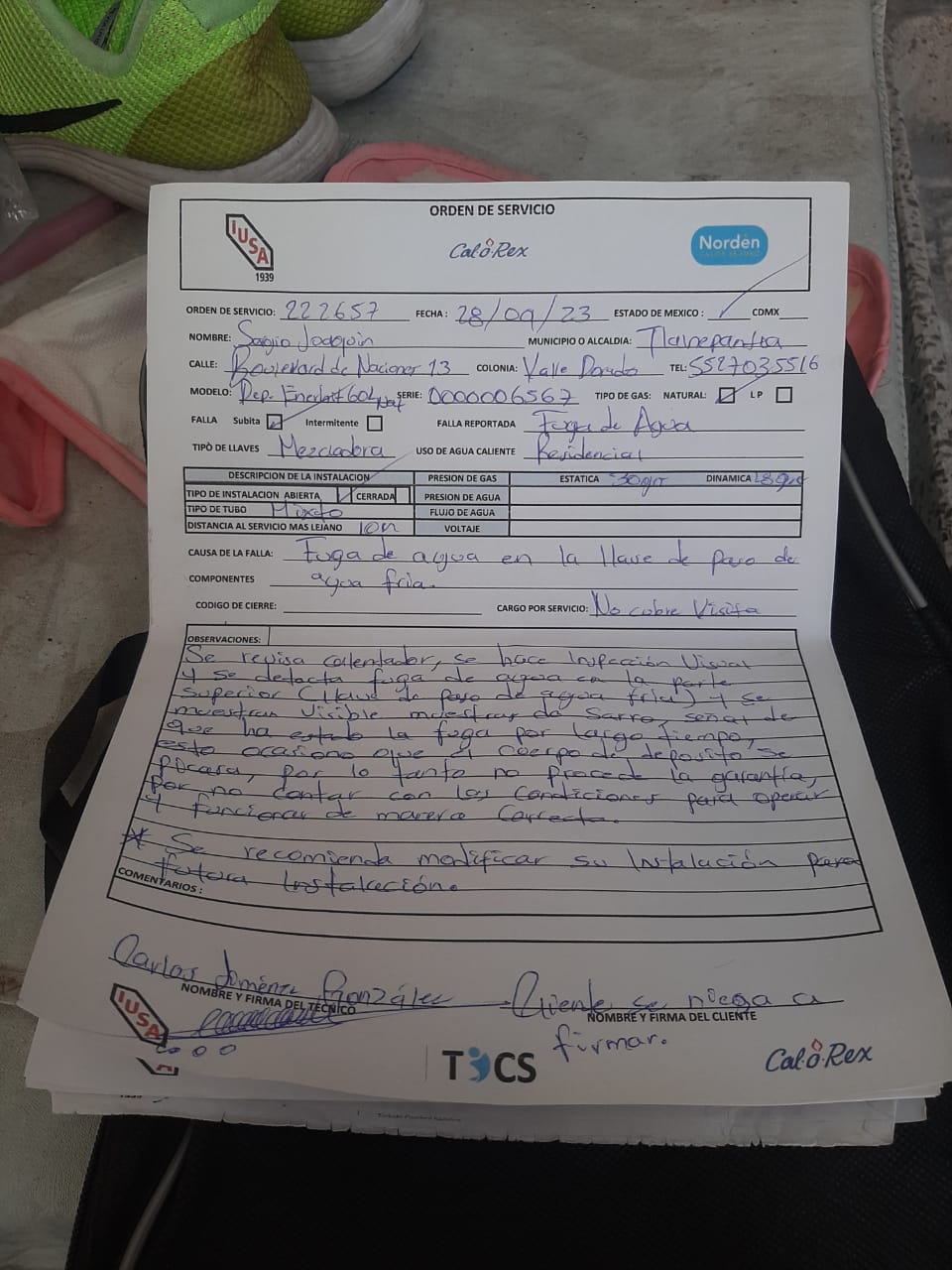 | Refacciones Utilizadas | NO | Tipo de Refacción | N/A | ||||||||||||||||
