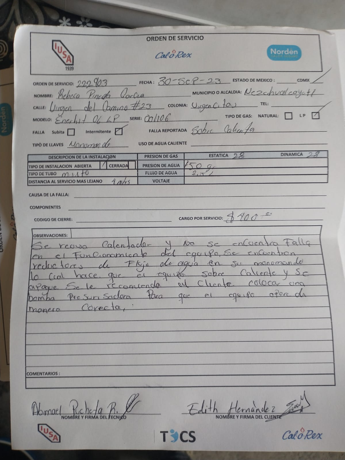 | Refacciones Utilizadas | NO | Tipo de Refacción | N/A | ||||||||||||||||
