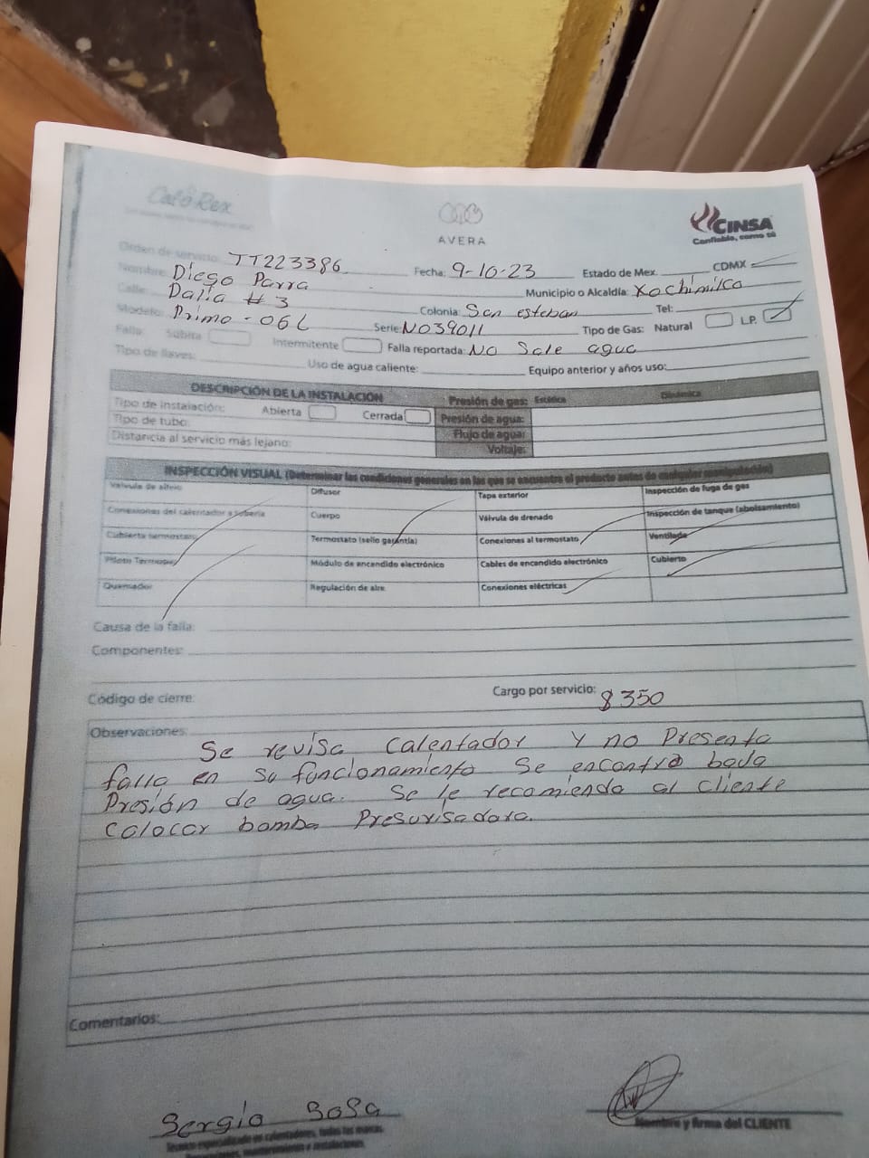 | Técnico | Alberto Gonzalez | Fecha Asistencia | 2023-10-09 11:00:00 | ||||||||||||||||