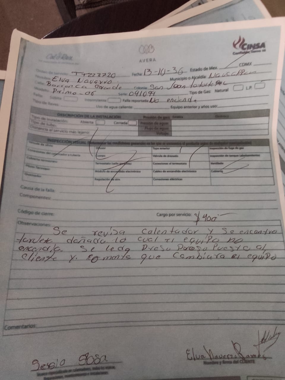 | Refacciones Utilizadas | NO | Tipo de Refacción | N/A | ||||||||||||||||