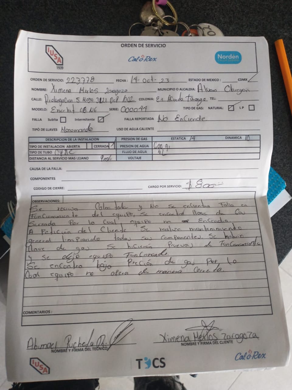 | Técnico | Alberto Gonzalez | Fecha Asistencia | 2023-10-14 10:00:00 | ||||||||||||||||