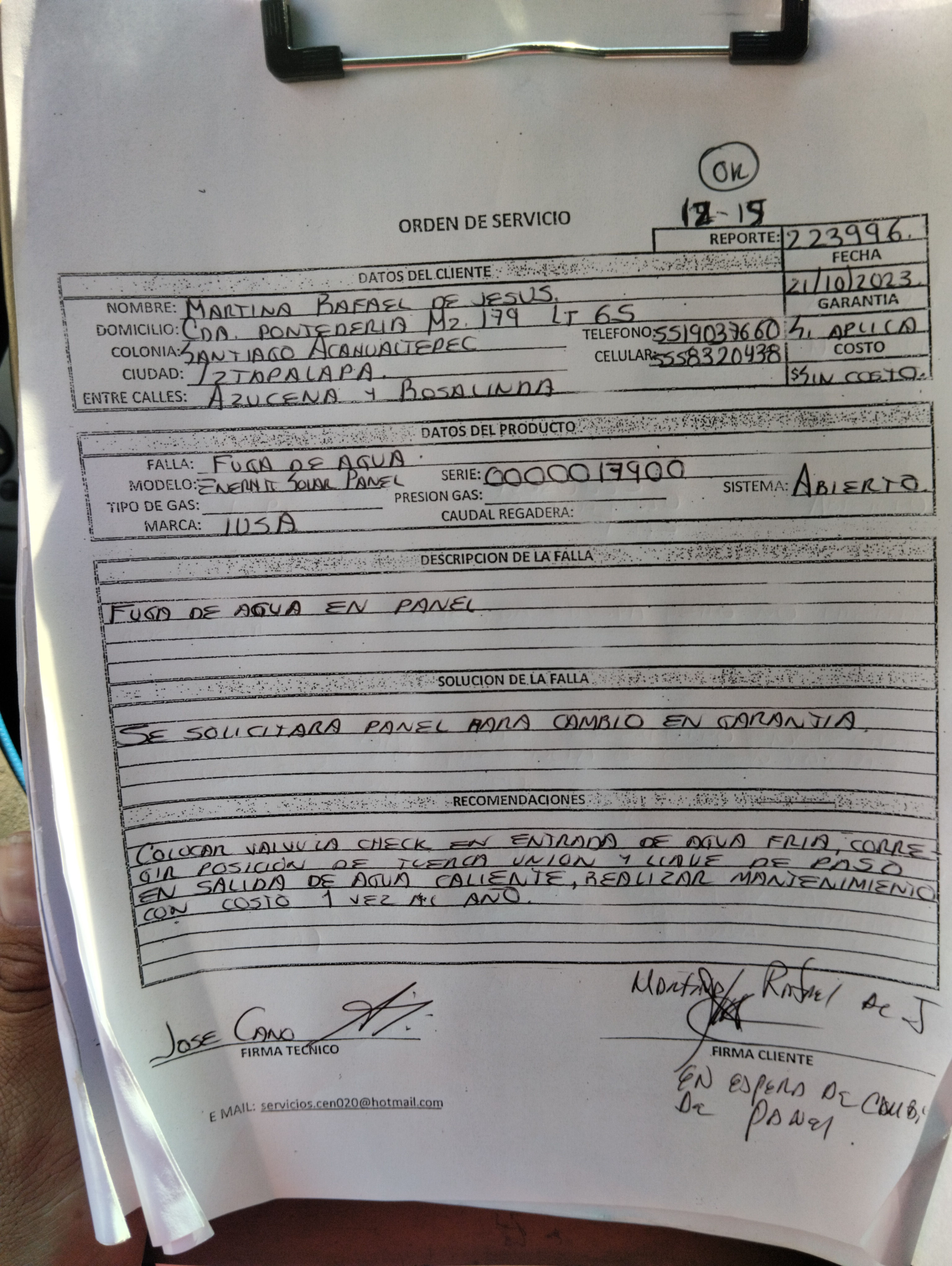 | Técnico | Jose Cano Sanchez | Fecha Asistencia | 2023-10-21 18:20:00 | ||||||||||||||||