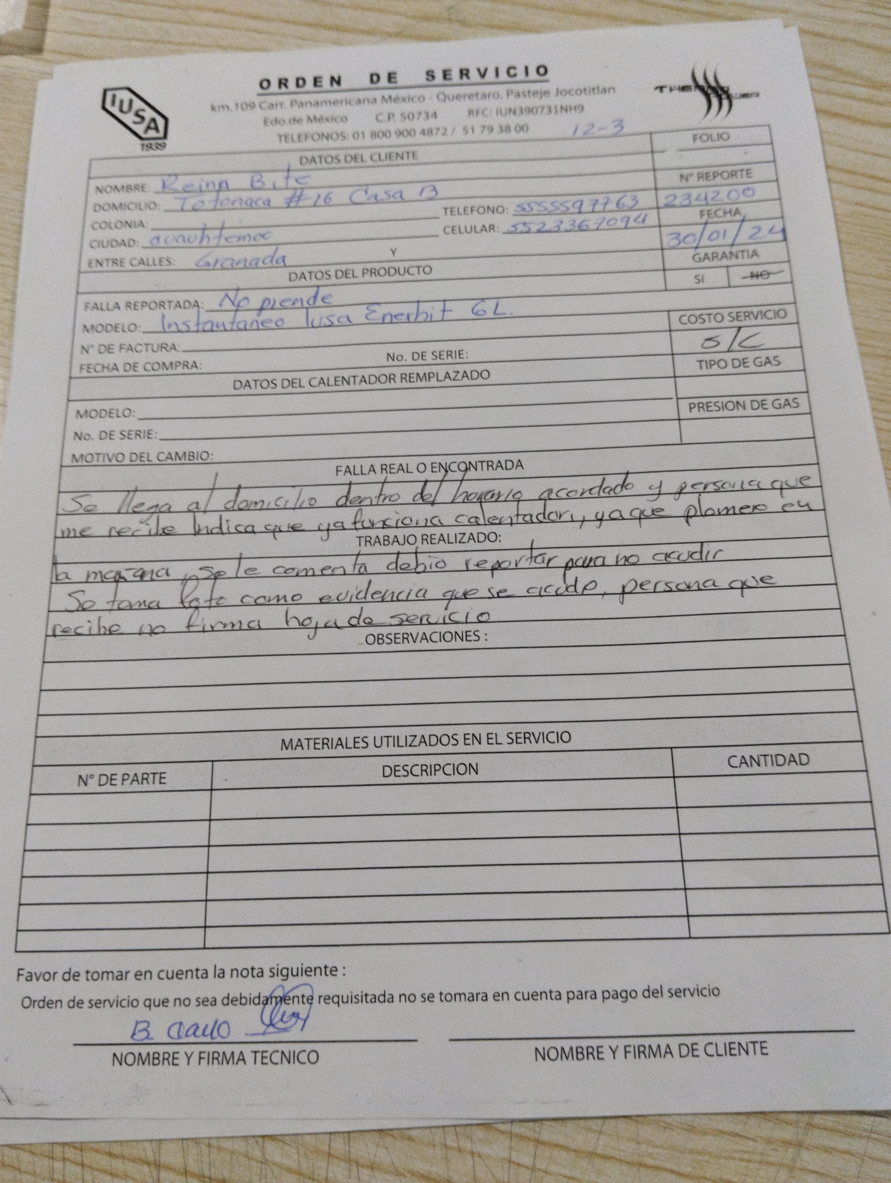 | Orden Interna | 58012915 | Falla Real | 206 No enciende | ||||||||||||||||