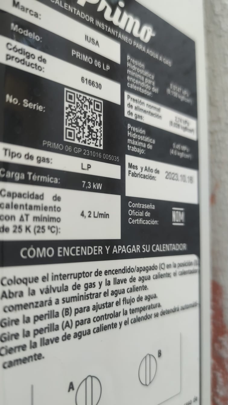 | Material | CALENTADOR INSTANTANEO PRIMO 6L LP | Tipo Producto | |