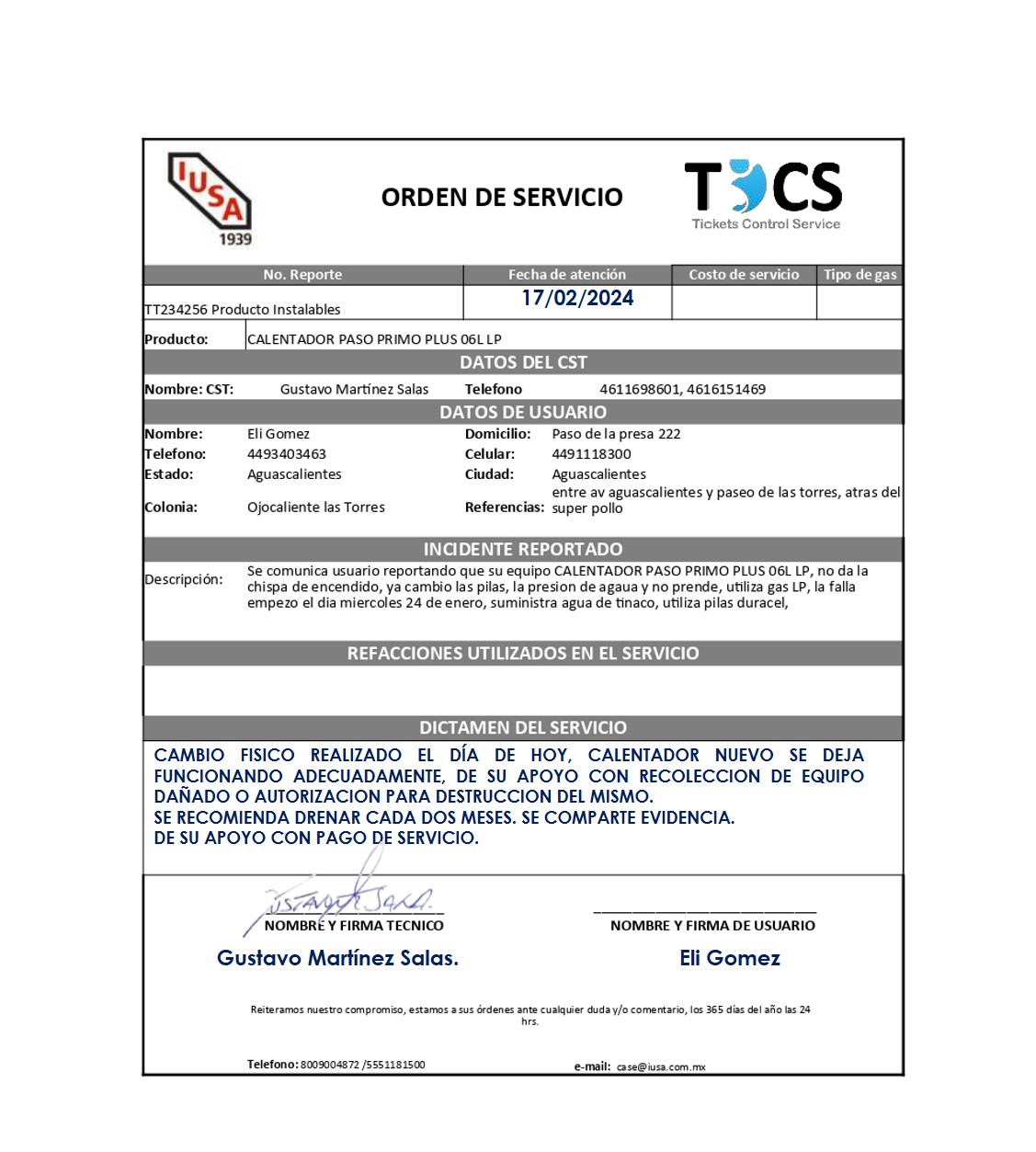 | Técnico | Gustavo Martinez Salas | Fecha Asistencia | 2024-01-31 18:30:00 | ||||||||||||||||