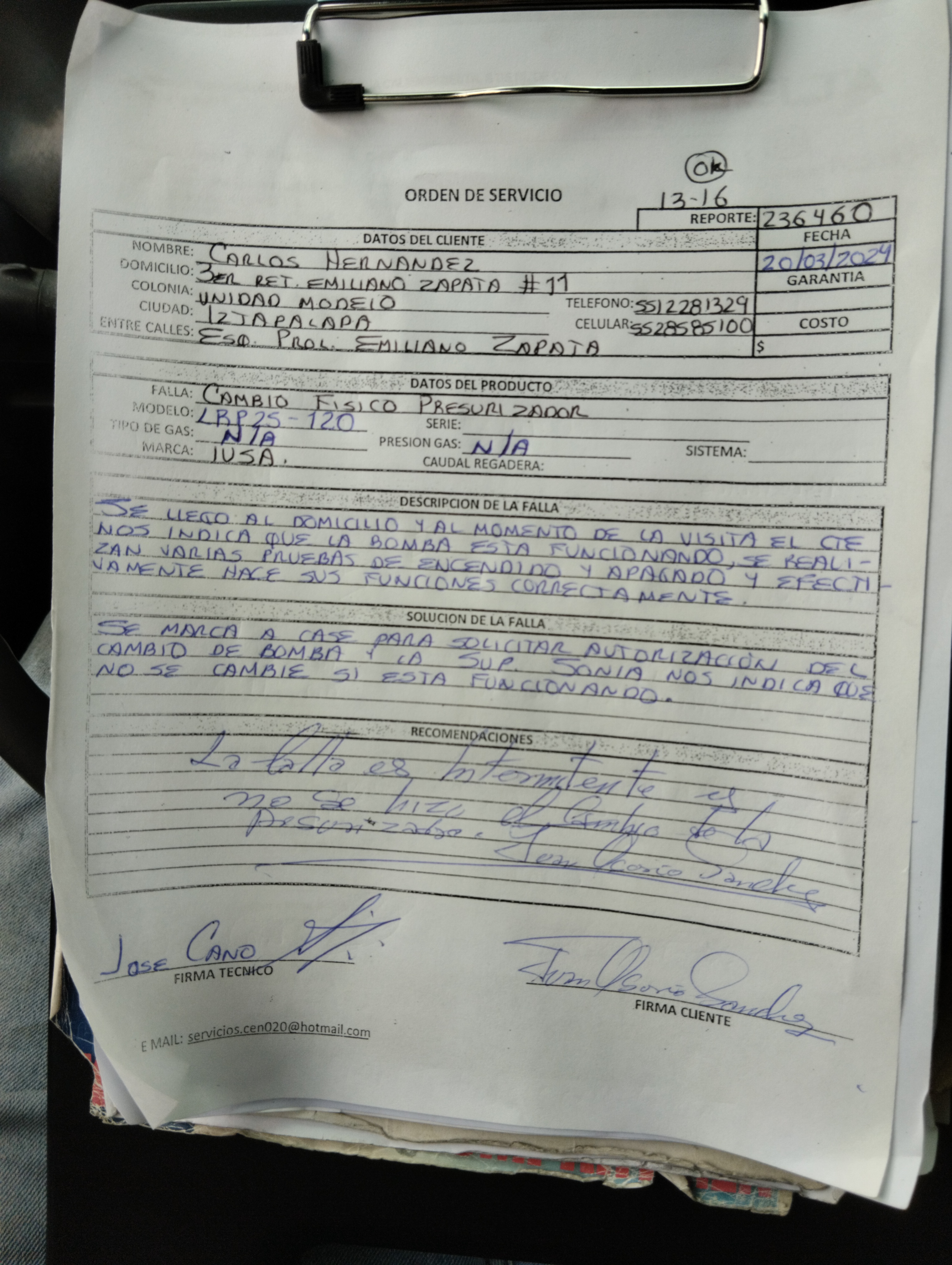 | Orden de Servicio | 236460 | Orden Interna Refacción | 618750 | ||||||||||||||||
