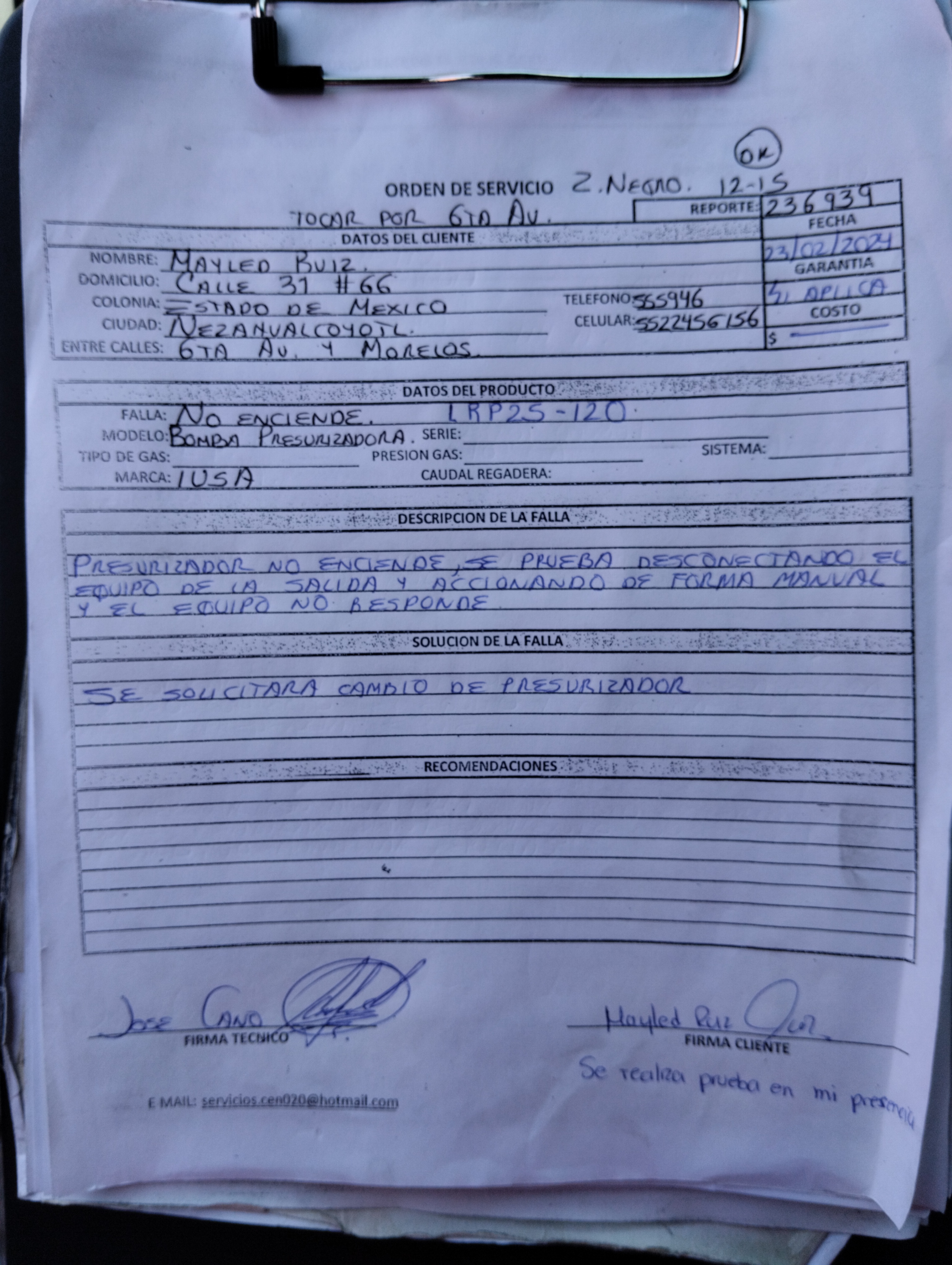 | Orden de Servicio | 236939 | Orden Interna Refacción | 618750 | ||||||||||||||||